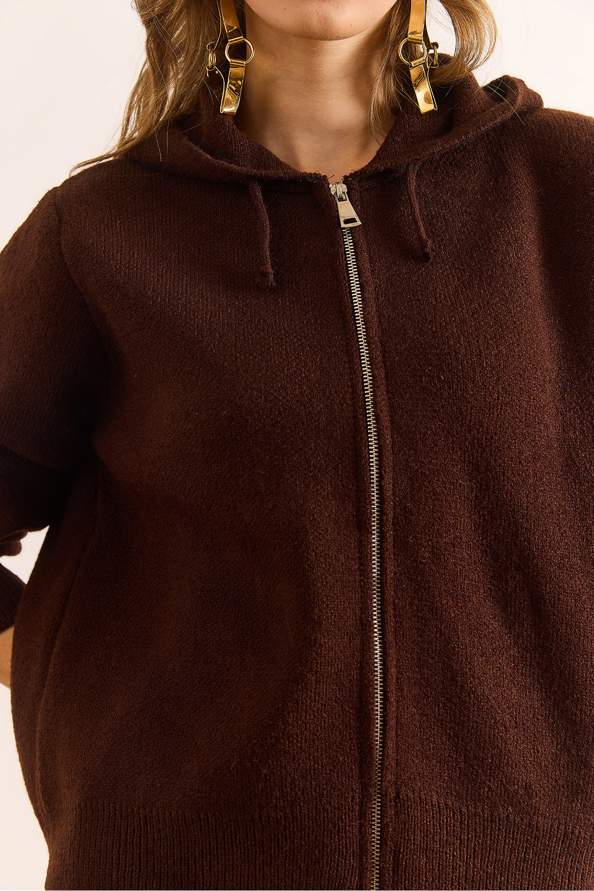 Kadın Kahverengi Kapüşonlu Fermuarlı Yumuşak Dokulu Kalın Triko Hırka Ceket CKT-19000469 Kadın Kahverengi Kapüşonlu Fermuarlı Yumuşak Dokulu Kalın Triko Hırka Ceket CKT-19000469 تک سایز