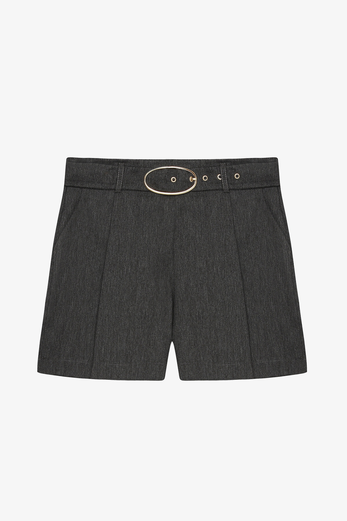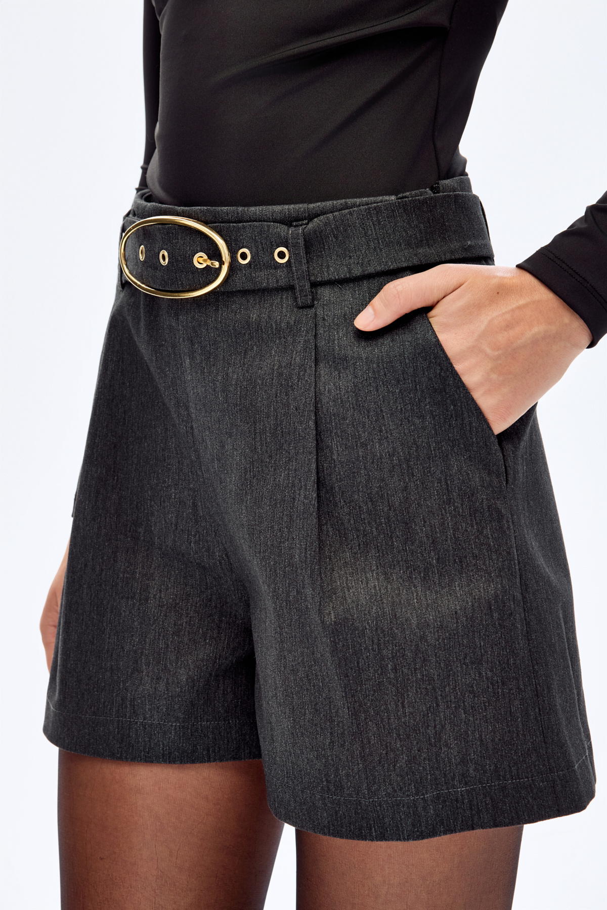 Tokalı Kemerli Pileli Mini Şort Antrasit Tokalı Kemerli Pileli Mini Şort Antrasit 26KSRT01054 L