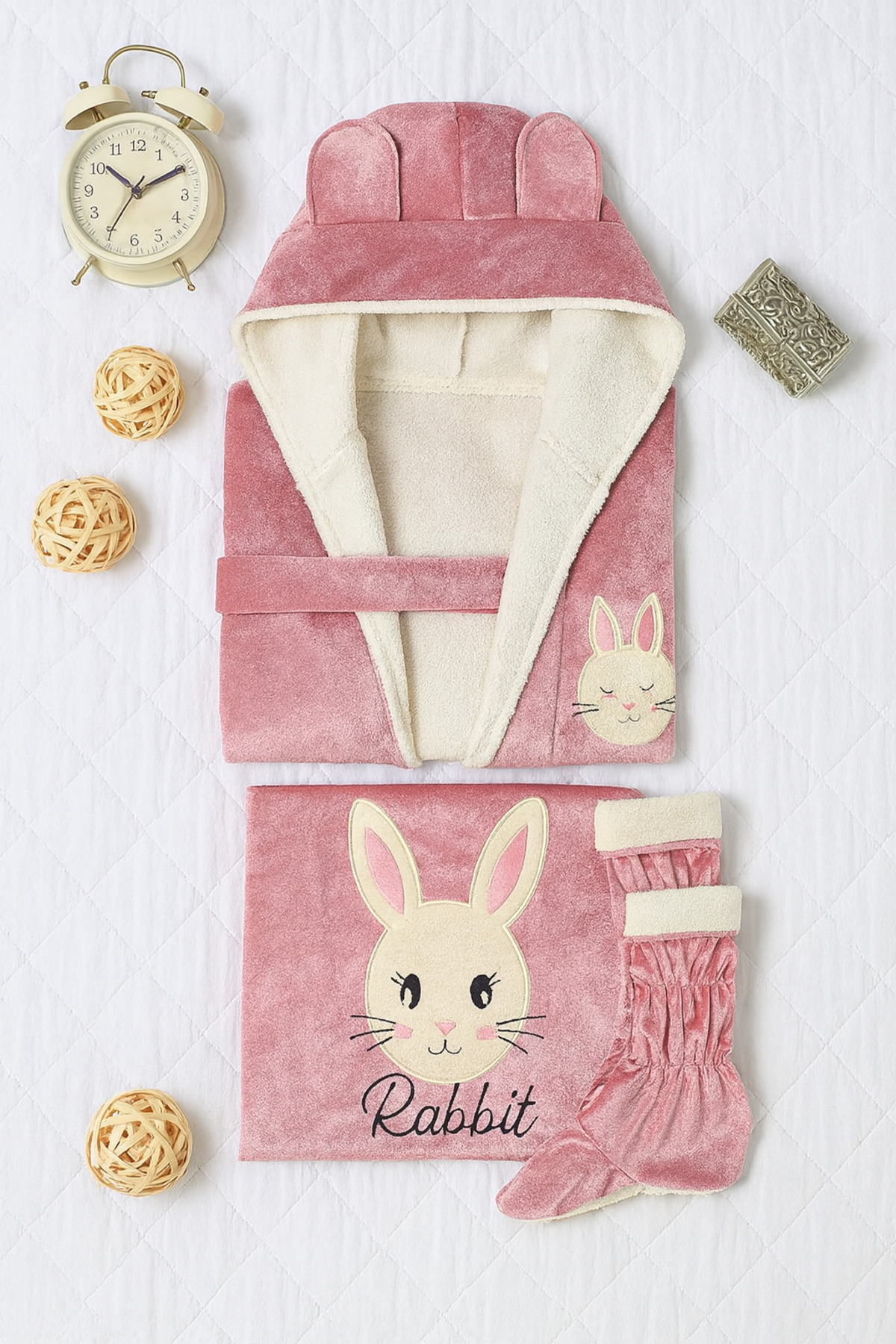 Rabbit Love Gülkurusu Kadife Sabahlıklı Gecelik Takımı (Patik Hediyeli) Rabbit Love Gülkurusu Kadife Sabahlıklı Gecelik Takımı (Patik Hediyeli) 3879 XL