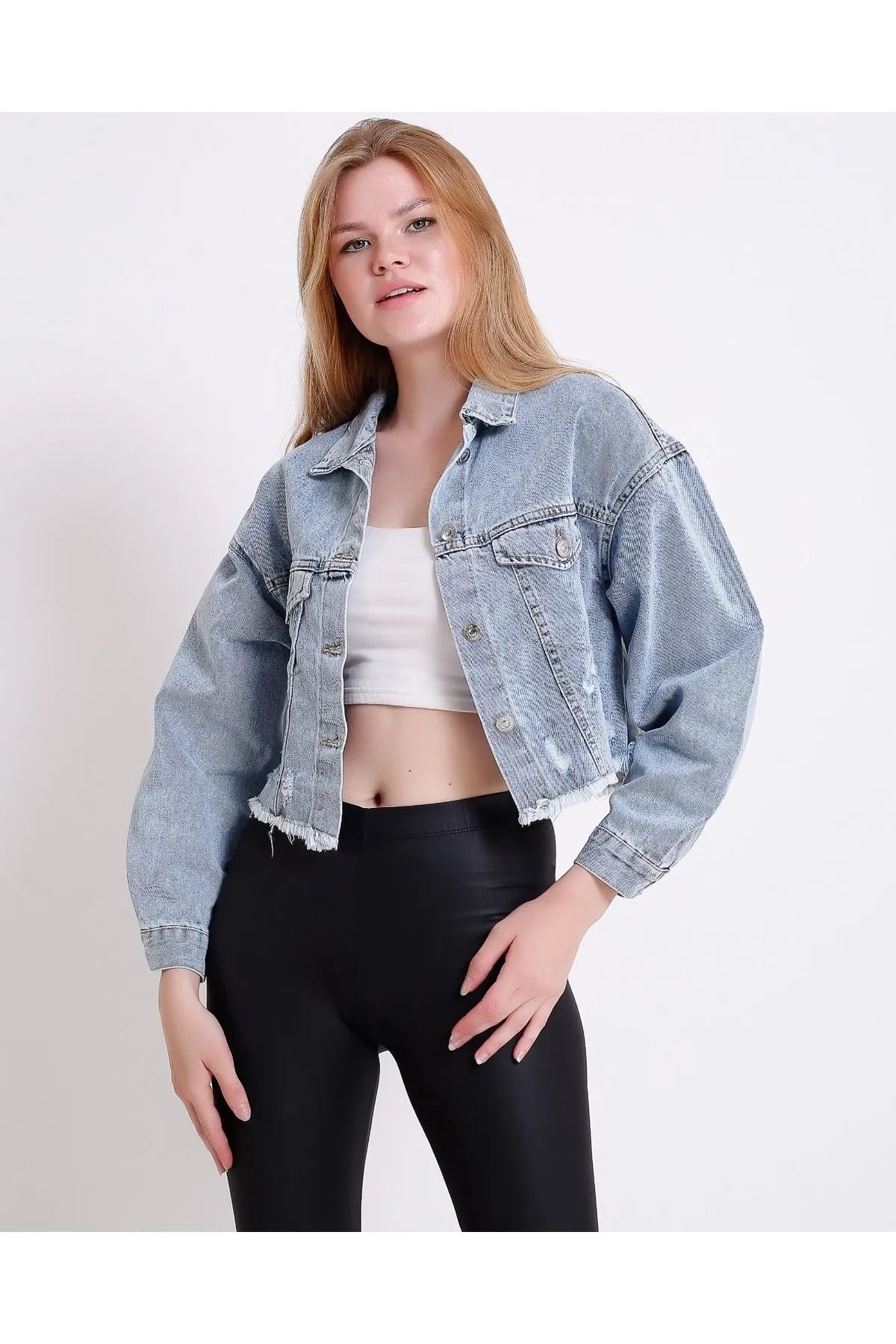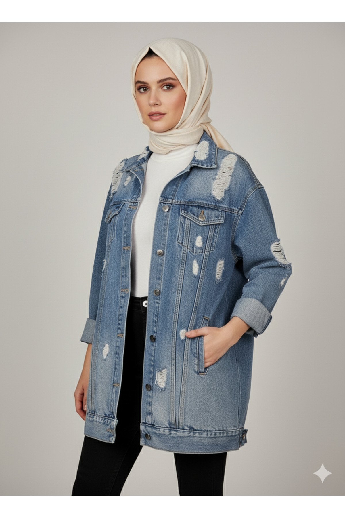 Oversize Cepli ve Yırtık Detaylı Kadın Uzun Kot Ceket Oversize Cepli ve Yırtık Detaylı Kadın Uzun Kot Ceket SSSMR530YRT M