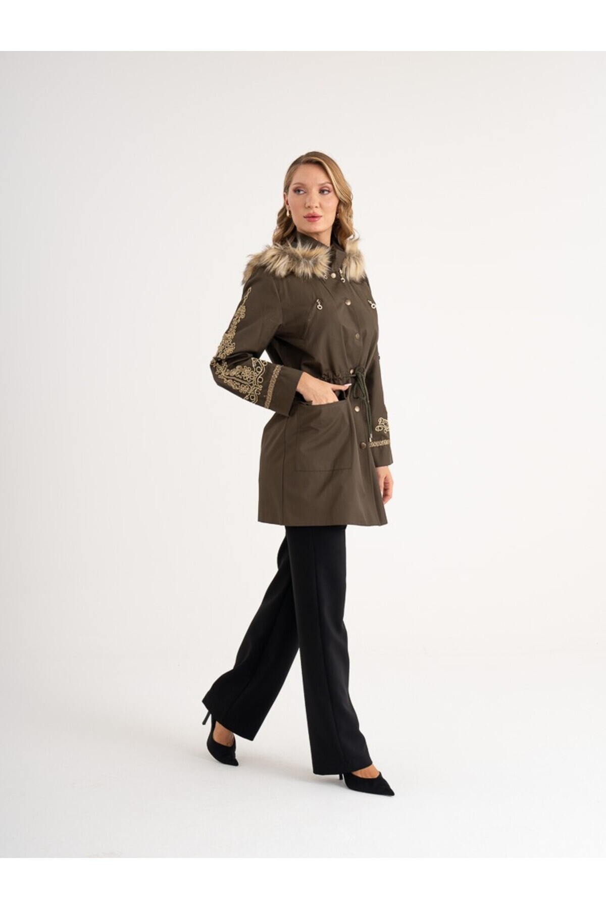 Kürk Detaylı Kapüşonlu Nakışlı Kadın Mont 27312 Kürk Detaylı Kapüşonlu Nakışlı Kadın Mont 27312 18K2127312 44