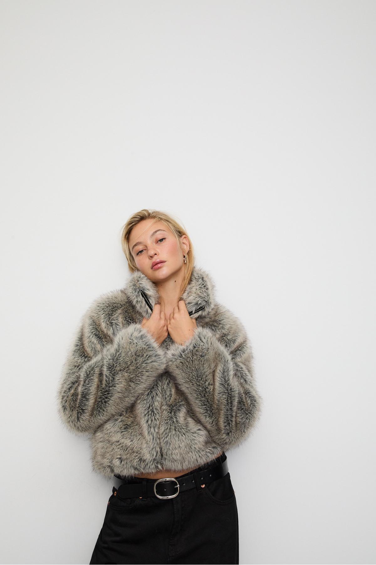 Suni kürk yüksek yakalı ceket Suni kürk yüksek yakalı ceket 05654538 XL
