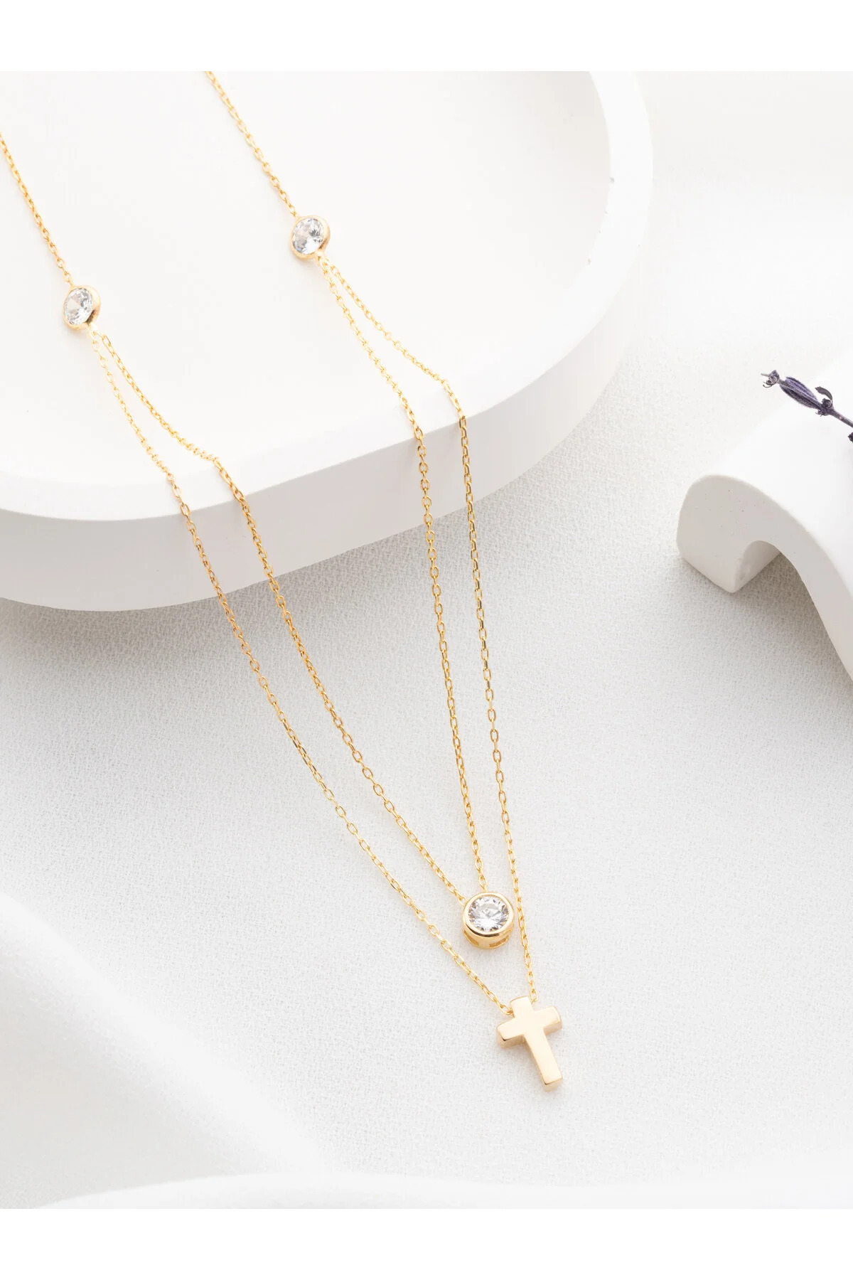 Üç Taşlı Haç Kolye | 925 Ayar Gümüş / 14K Altın Kaplama / Bronz Seçenekli Üç Taşlı Haç Kolye | 925 Ayar Gümüş / 14K Altın Kaplama / Bronz Seçenekli 1003 45 cm