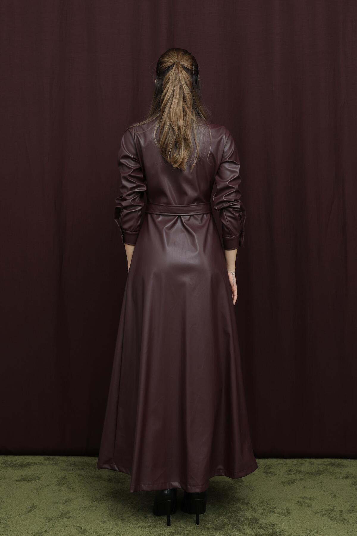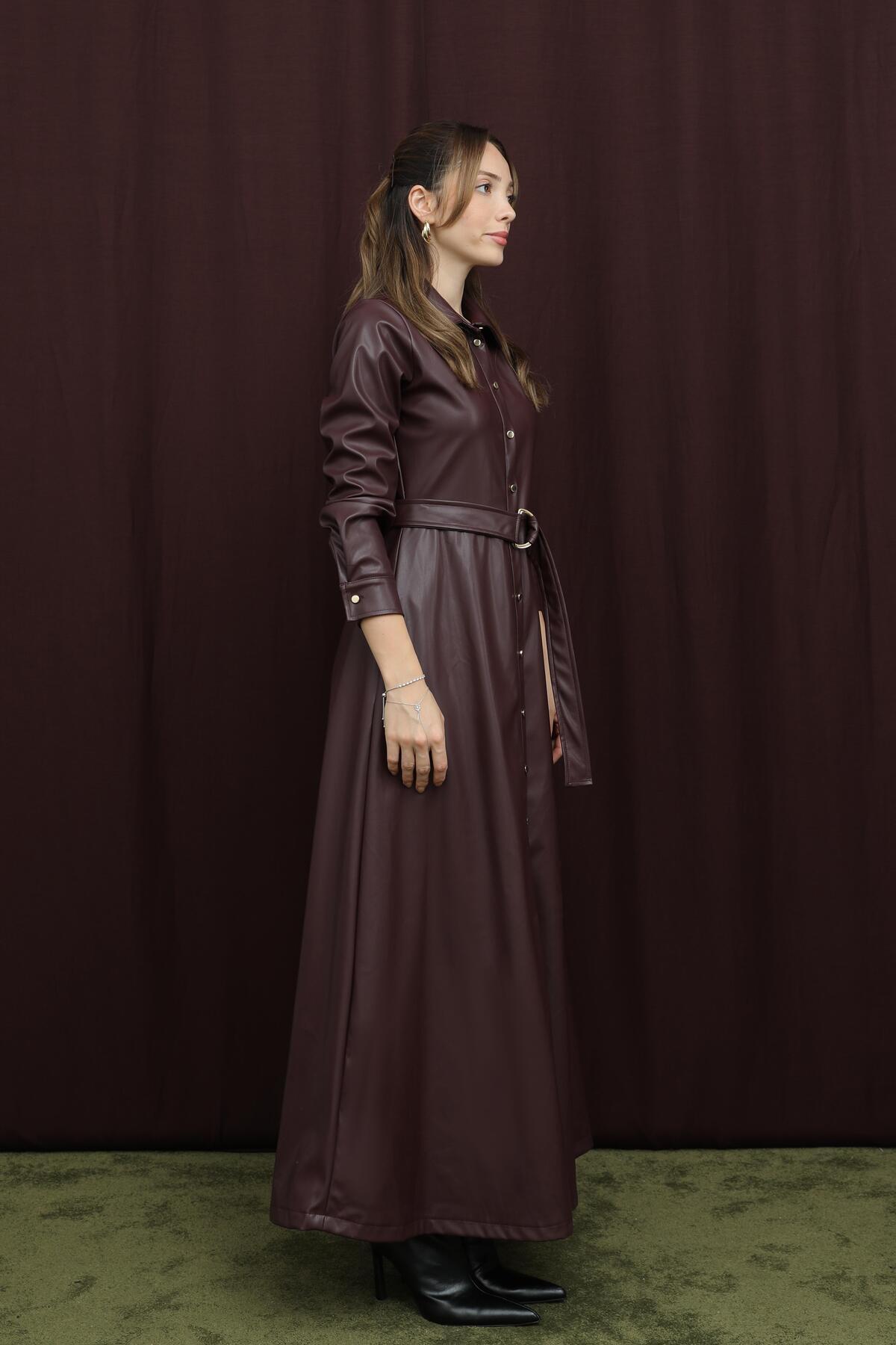 Kadın Kuşaklı Deri Elbise - 20709ELB - Mürdüm Kadın Kuşaklı Deri Elbise - 20709ELB - Mürdüm 25W-20709ELB XL