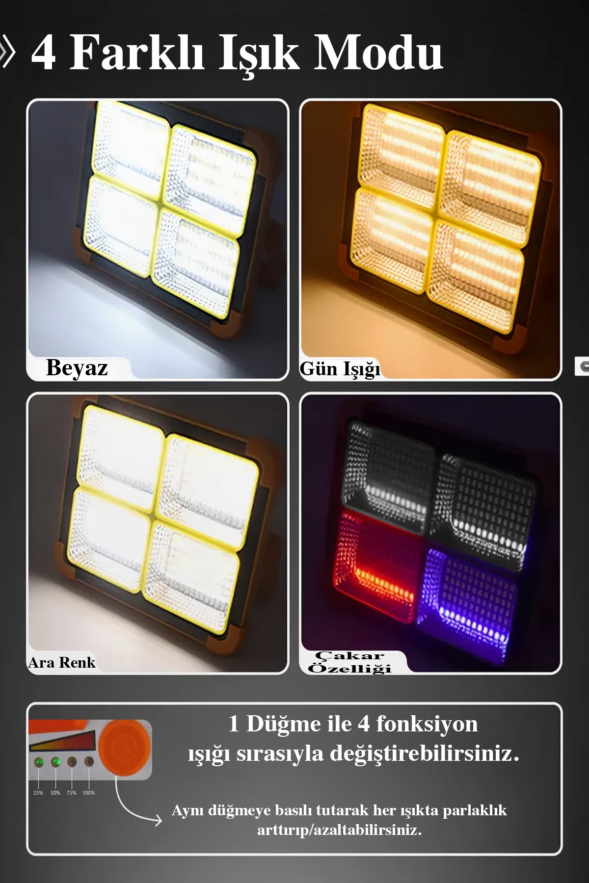 Şarjlı Güneş Enerjili Led Projektör Kamp Modu 4 Renk Işık SOS Işık 200 Watt Şarjlı Güneş Enerjili Led Projektör Kamp Modu 4 Renk Işık SOS Işık 200 Watt Solar-Projektör تک سایز