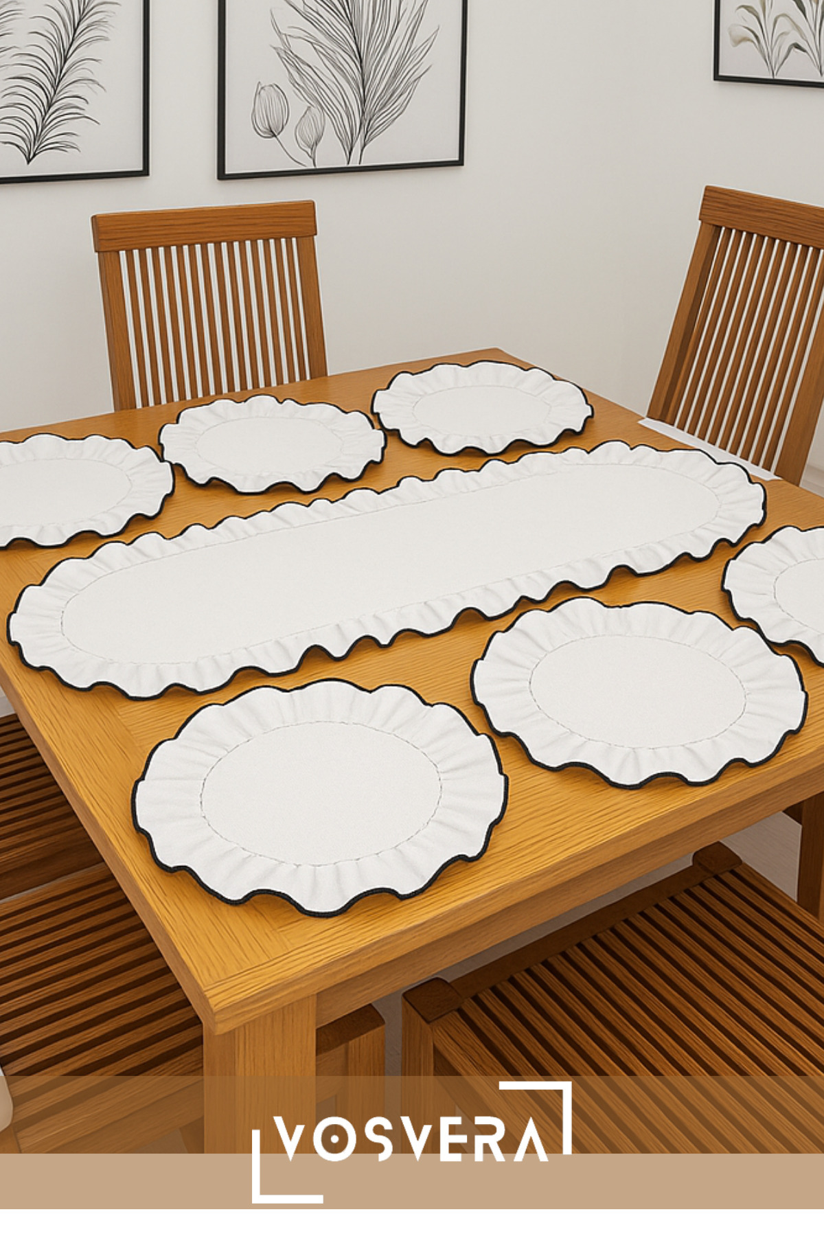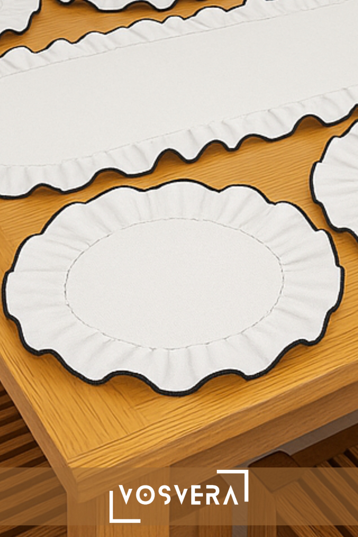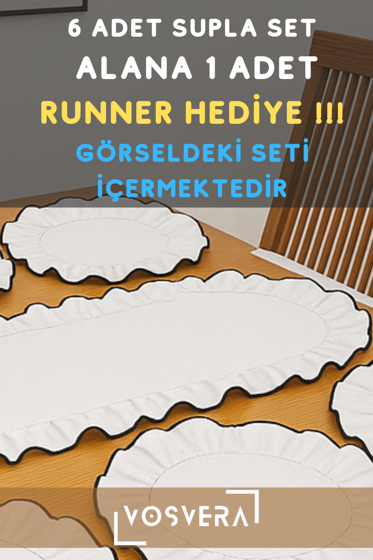 %100 Keten Kenar Biyeli Fırfırlı Hediyeli Runner ve 6’lı Supla Seti 7 Parça Sofra Takımı %100 Keten Kenar Biyeli Fırfırlı Hediyeli Runner ve 6’lı Supla Seti 7 Parça Sofra Takımı suplaseti تک سایز
