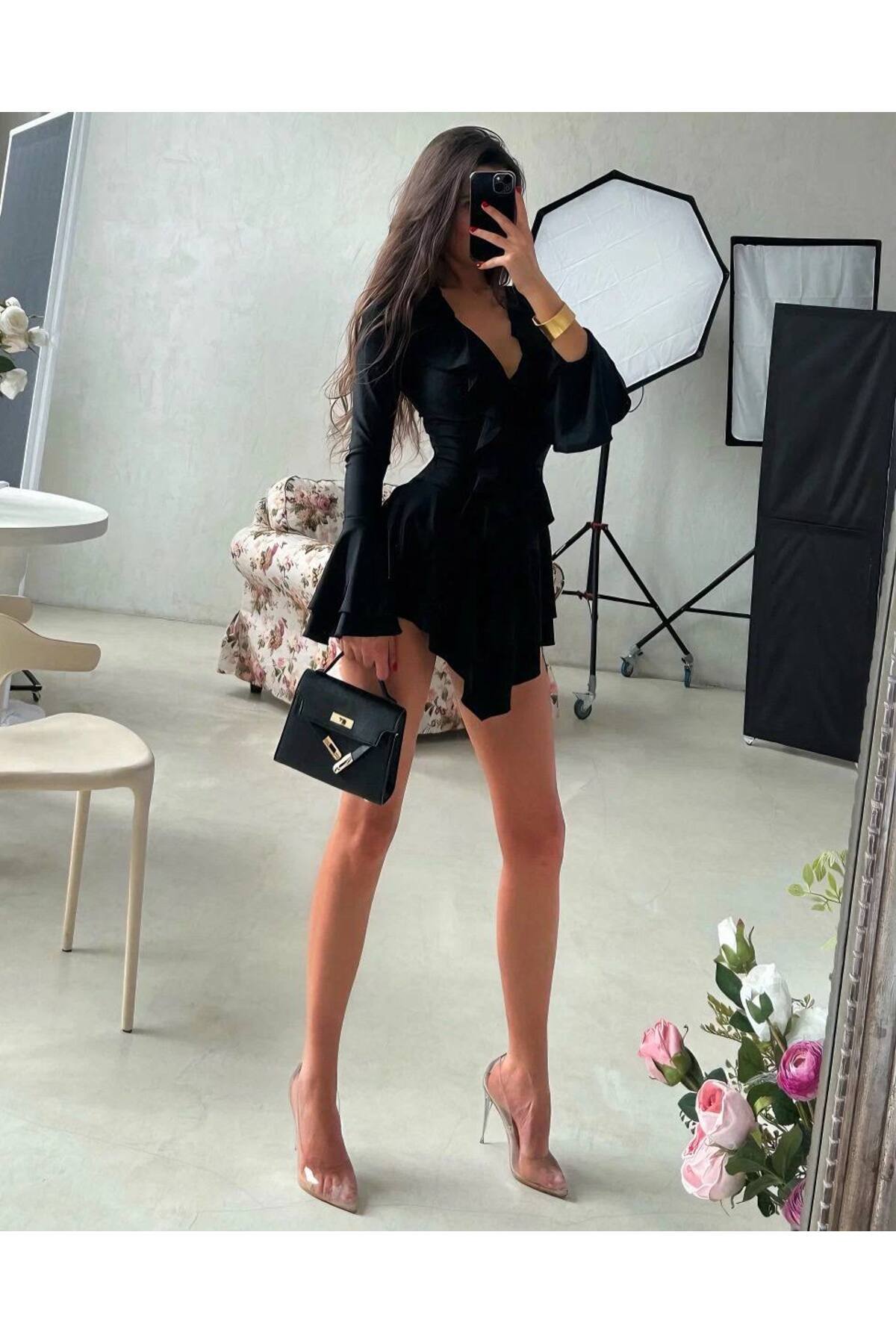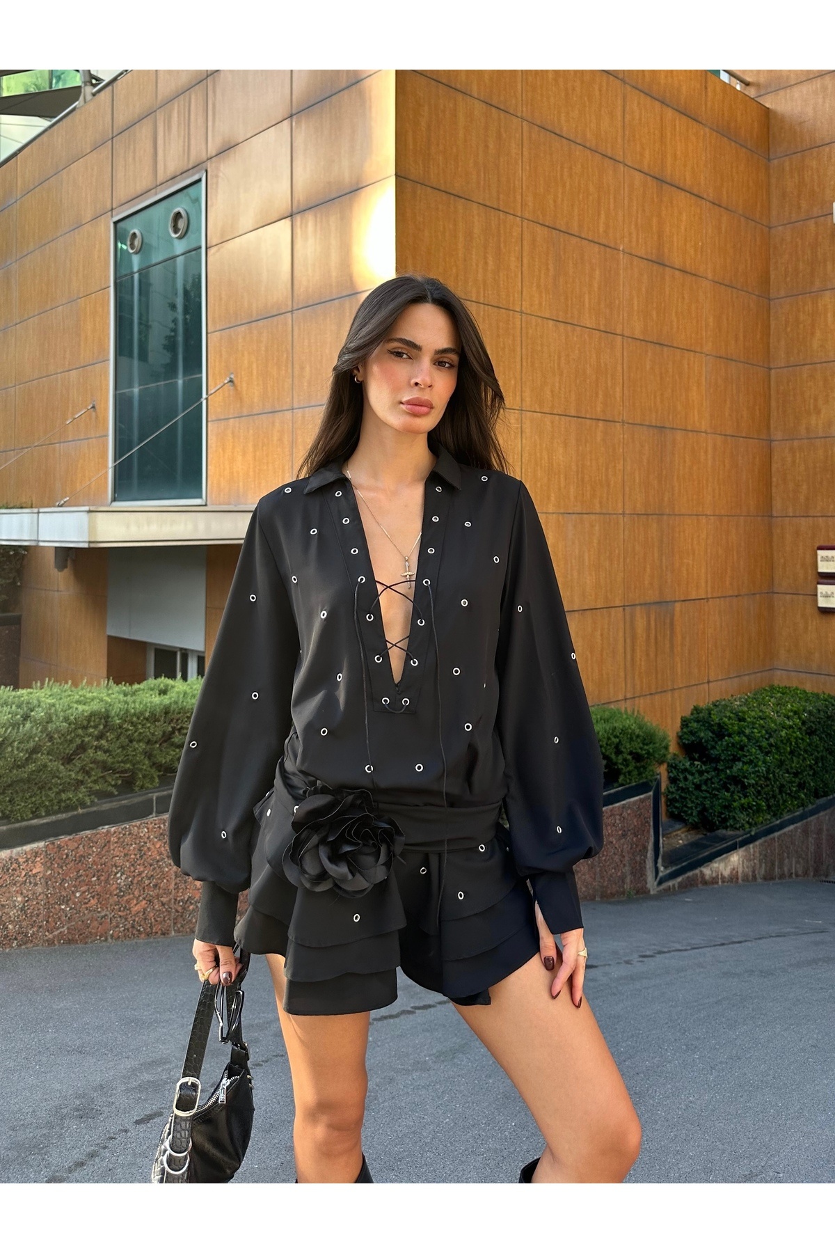 Kadın Siyah Sim Korseli Vatkalı Elbise Kadın Siyah Sim Korseli Vatkalı Elbise FM5312