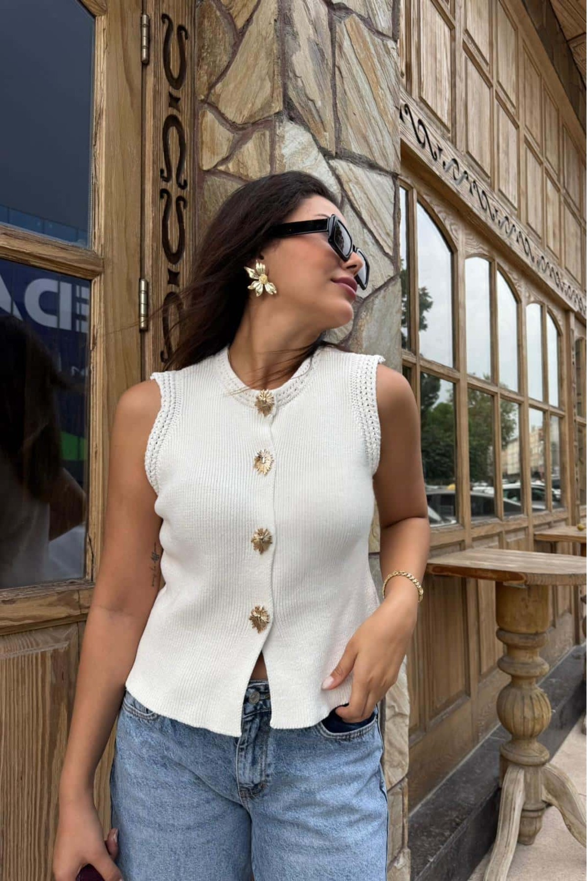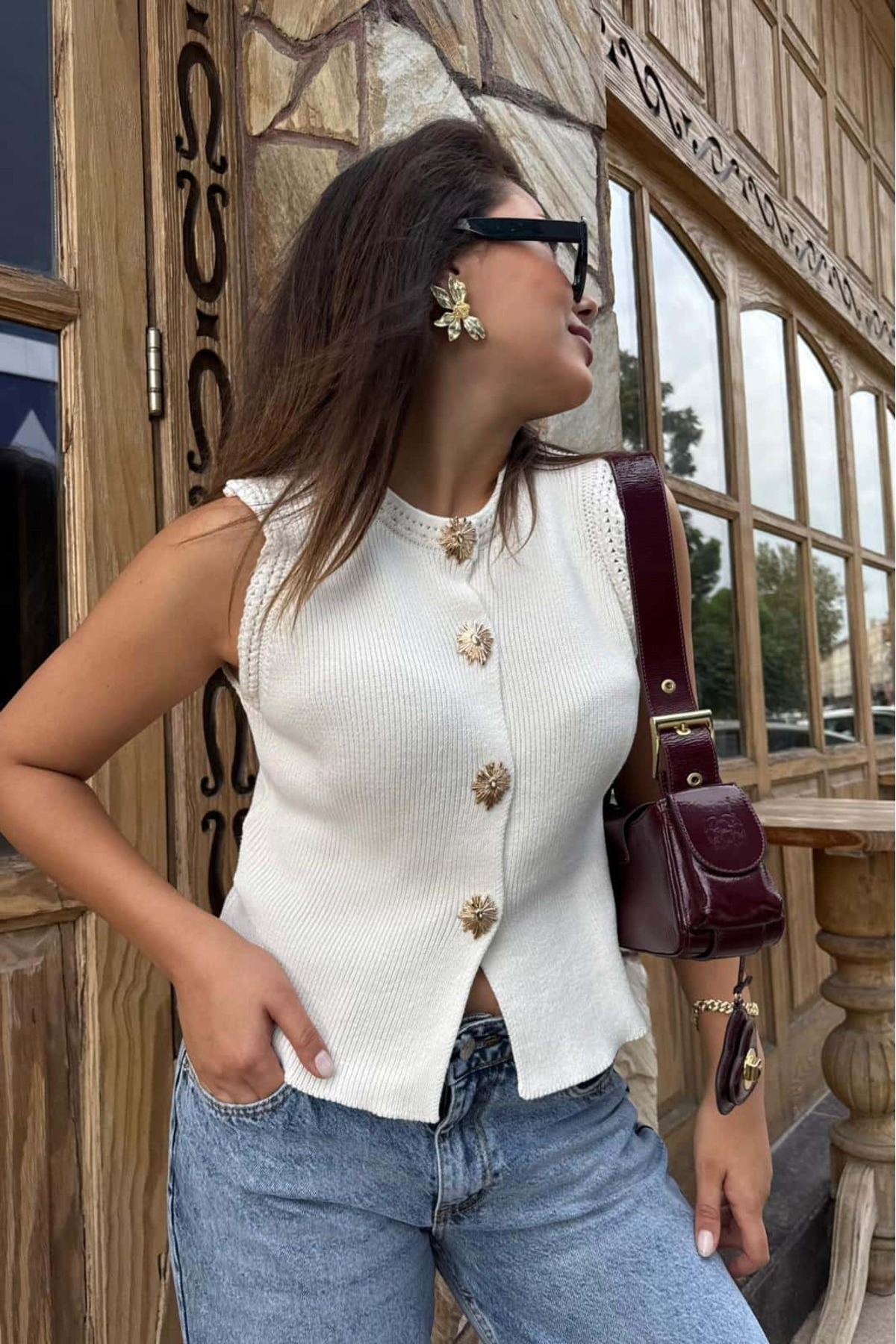 Düğme Detaylı Triko Yelek Düğme Detaylı Triko Yelek gunes-dugme-detayli-triko-yelek Standart