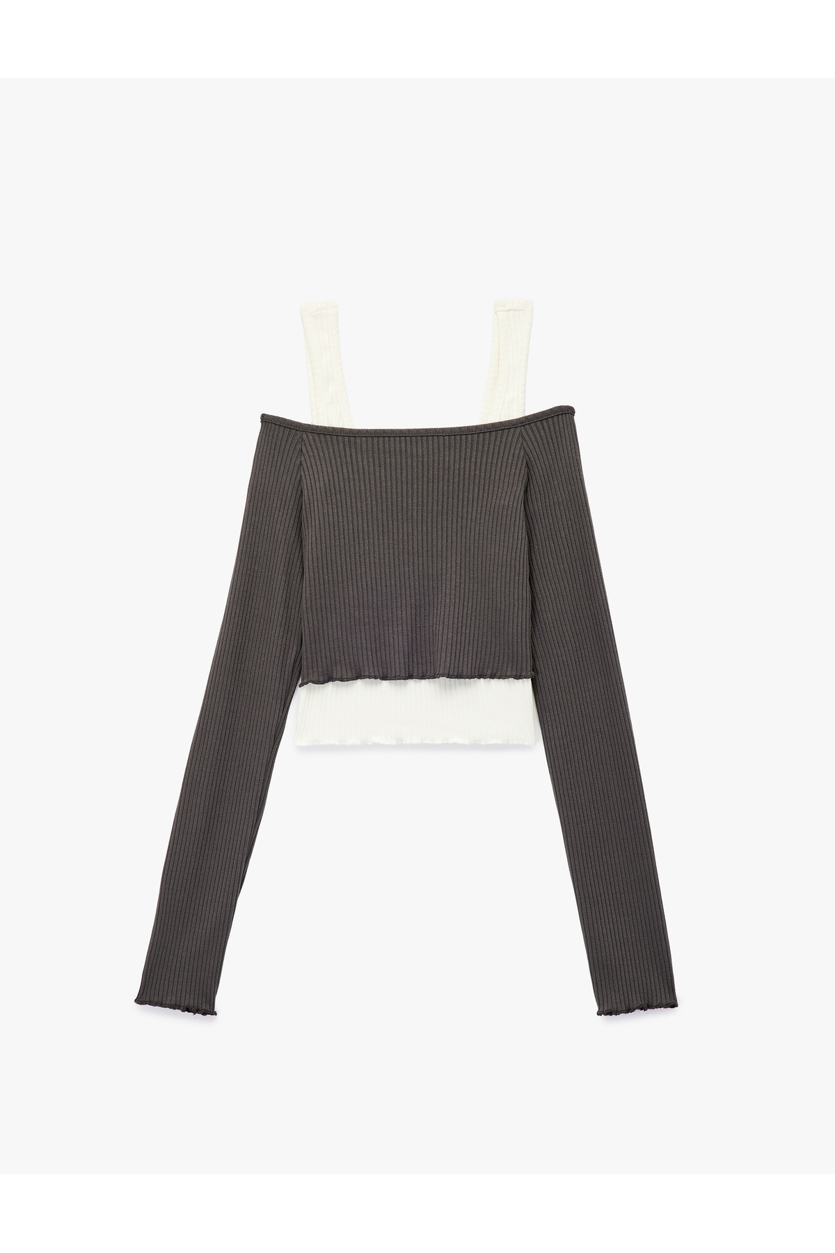 Omzu Açık Uzun Kollu Atlet Detaylı Crop Tişört Omzu Açık Uzun Kollu Atlet Detaylı Crop Tişört 6WAL10100IK XL