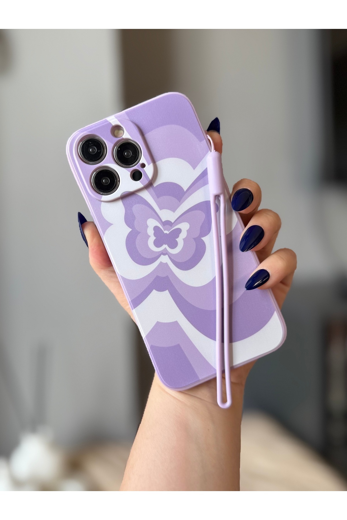 IPHONE 14 PRO MAX İPLİ LİLA KELEBEK DESENLİ KILIF IPHONE 14 PRO MAX İPLİ LİLA KELEBEK DESENLİ KILIF 836g تک سایز