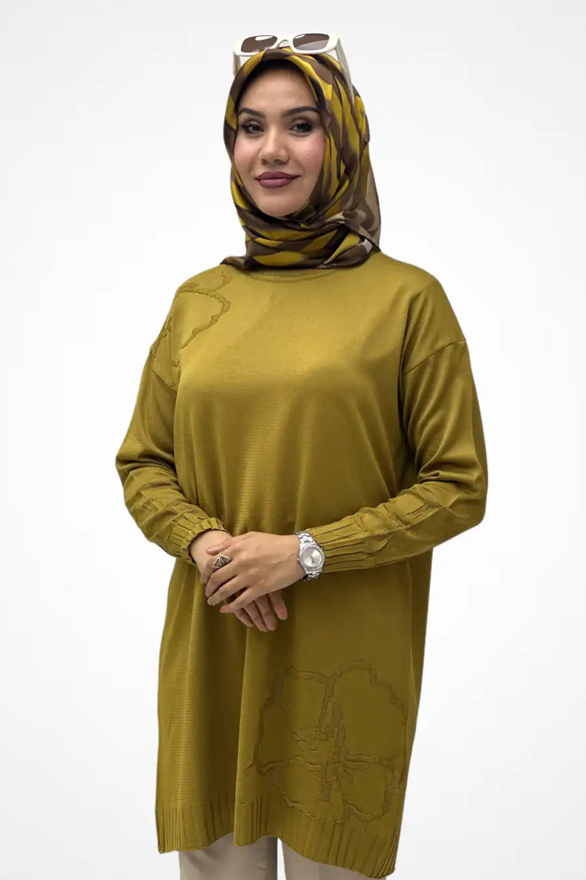 Modaabad Gonca Desenli Merserize Tunik 35224 Yağ Yeşili Modaabad Gonca Desenli Merserize Tunik 35224 Yağ Yeşili M