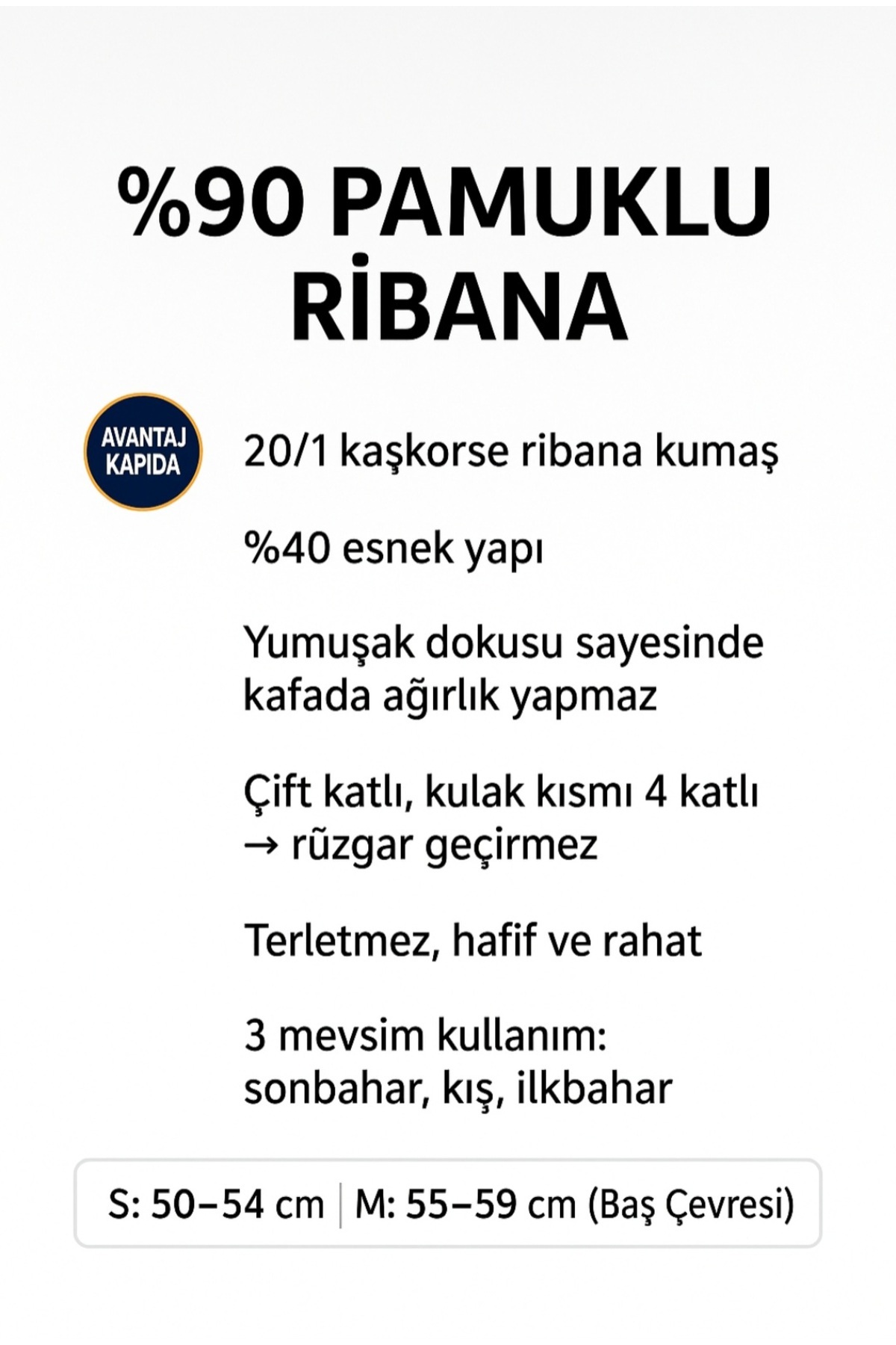 - Materyal Bileşeni : 95% Pamuk, 5% Elastan