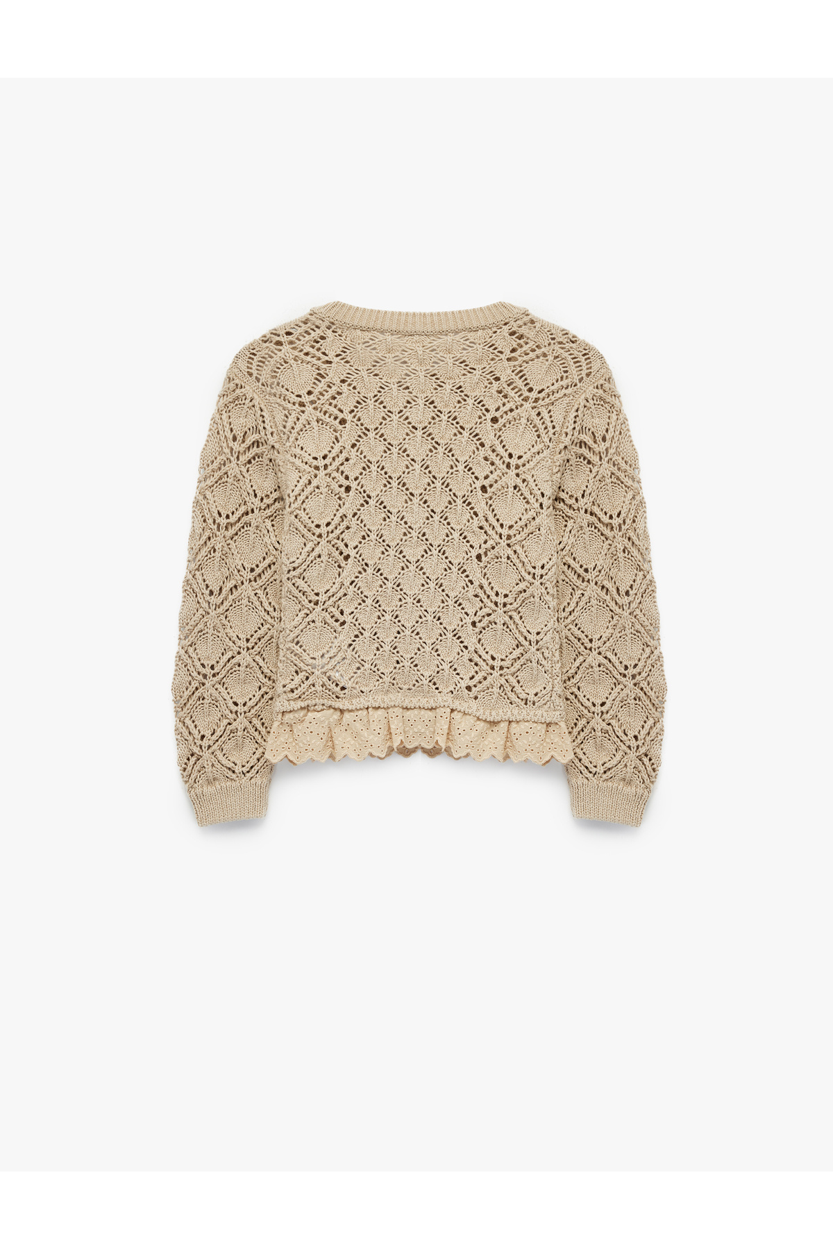Uzun Kollu Ajurlu Fırfırlı Düğmeli Bisiklet Yaka Triko Hırka Uzun Kollu Ajurlu Fırfırlı Düğmeli Bisiklet Yaka Triko Hırka 6WMG90012HT 4-5 Yaş