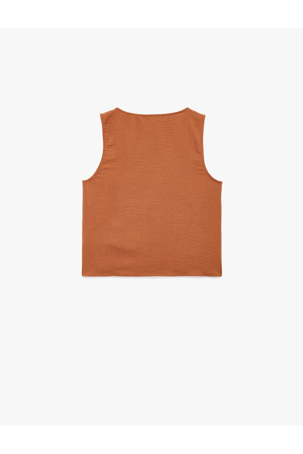 Kolsuz Bisiklet Yaka Drape Detaylı Bluz Kolsuz Bisiklet Yaka Drape Detaylı Bluz 5SAK60256PW 40