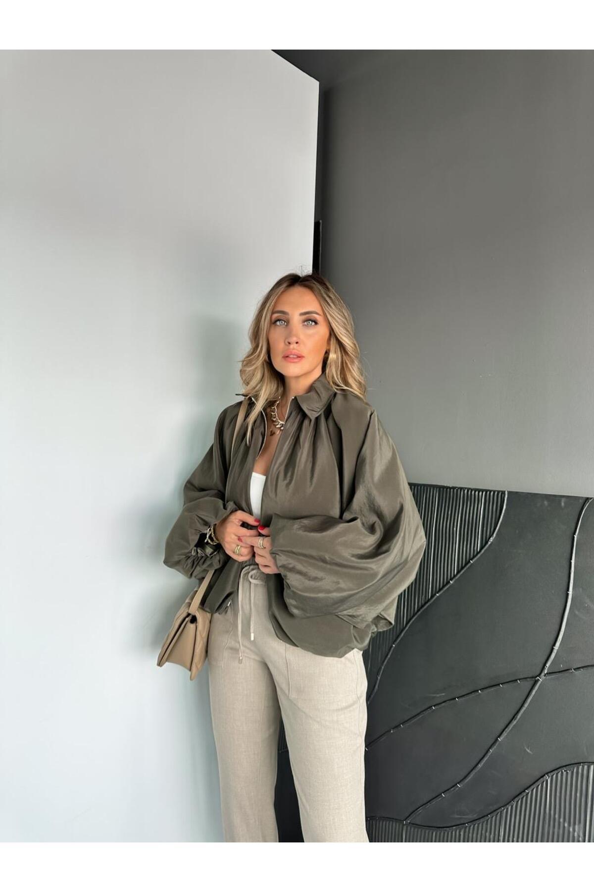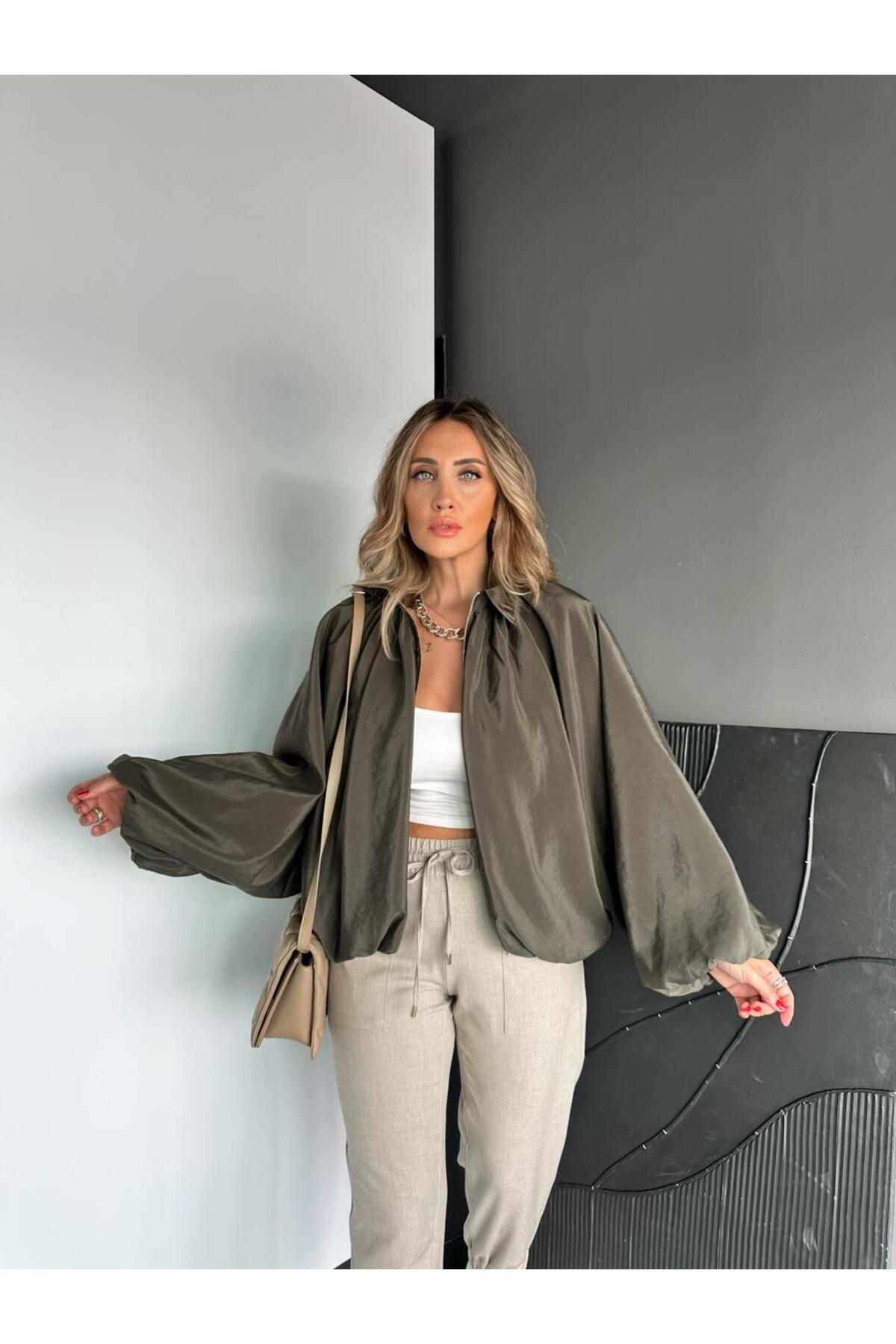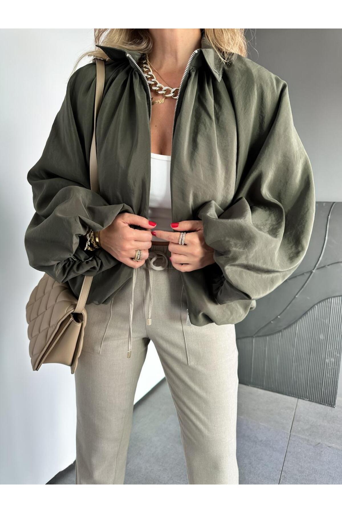 Haki Büzgü Detaylı Bomber Ceket Haki Büzgü Detaylı Bomber Ceket 2675 Standart