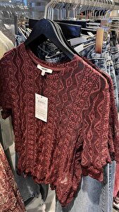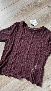 Yarı Transparan Kısa Kollu Bisiklet Yaka Dantel Tişört Yarı Transparan Kısa Kollu Bisiklet Yaka Dantel Tişört 6WAK50150EK 2XL