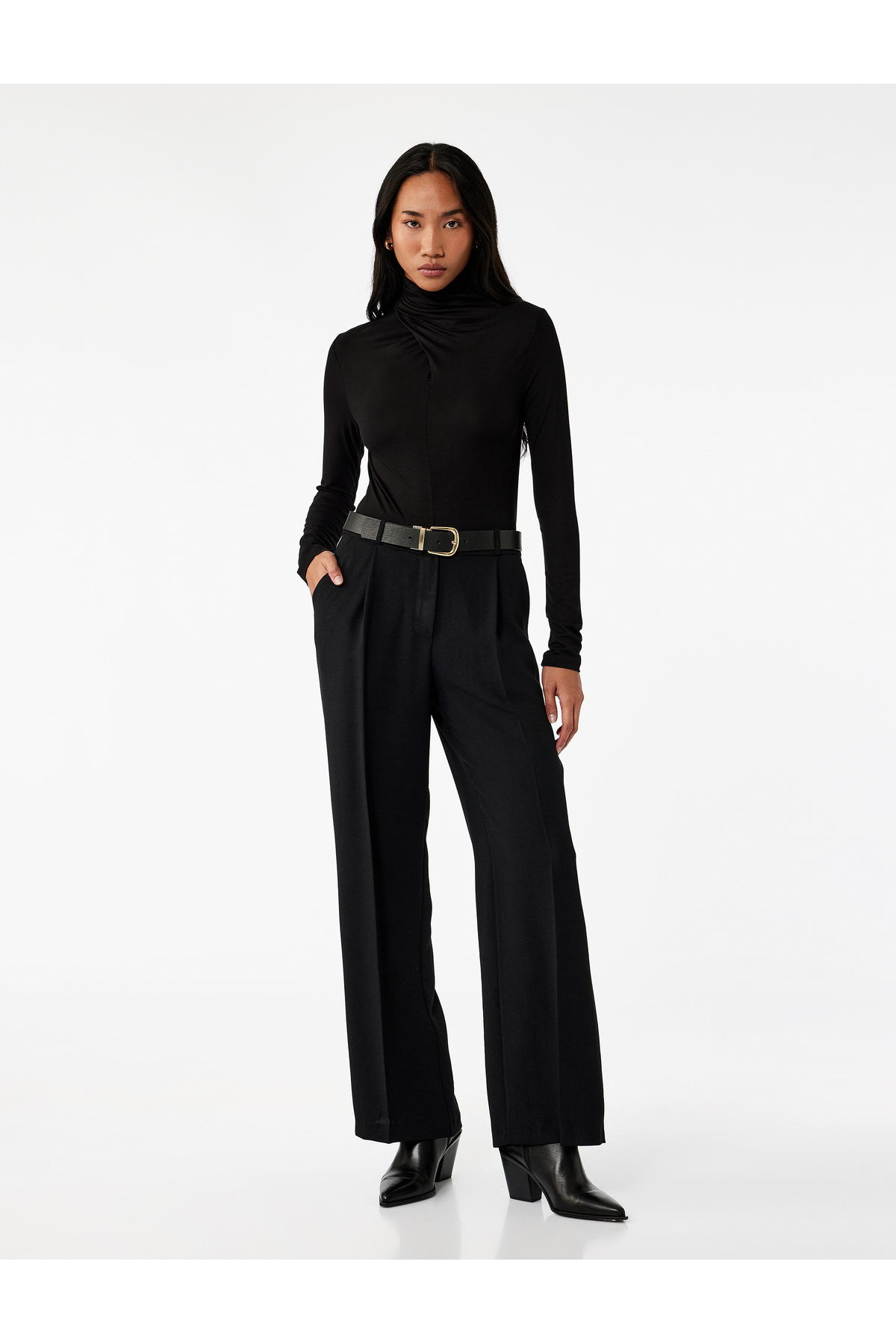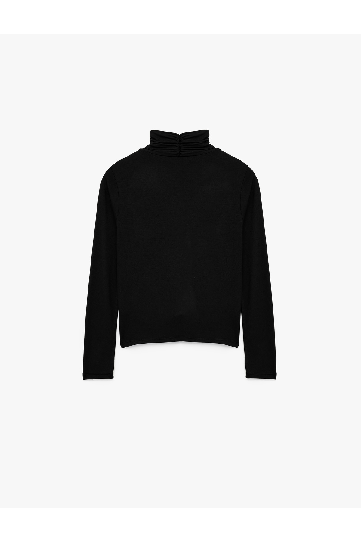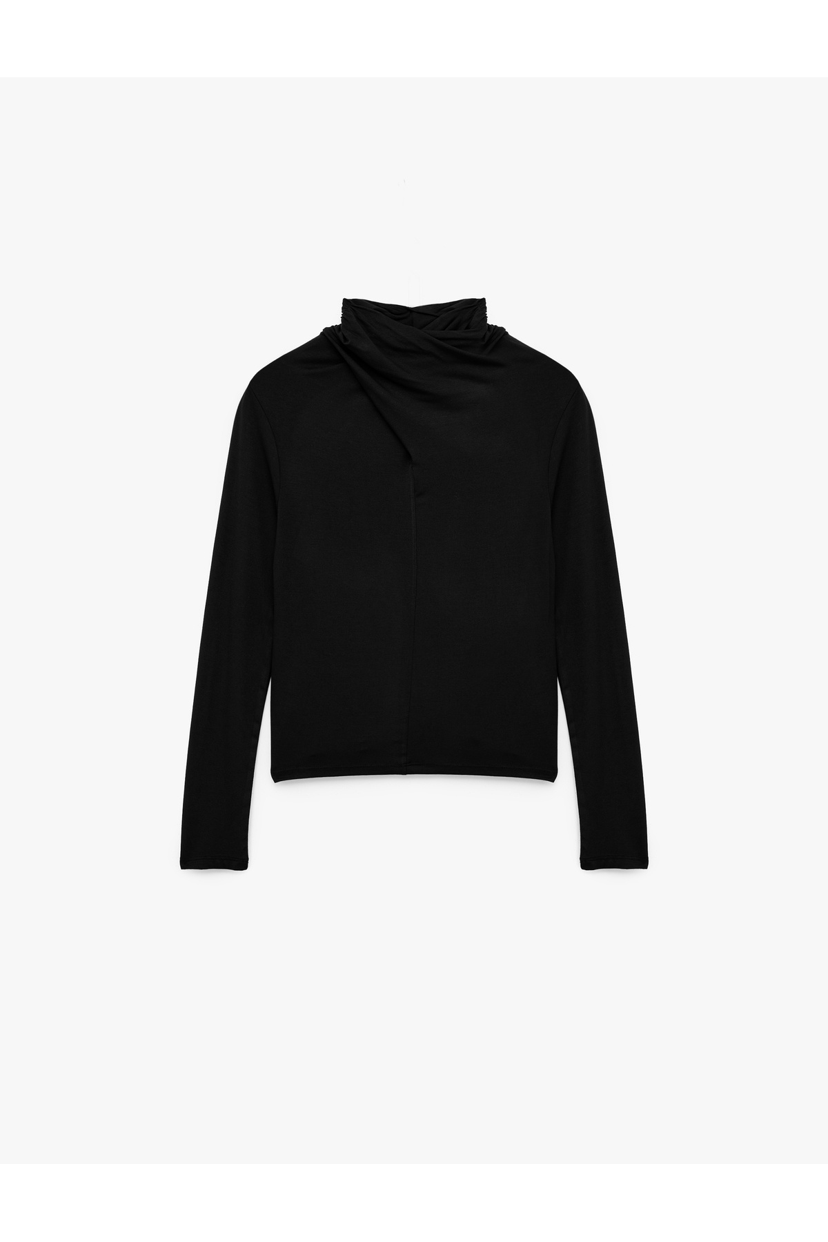 Uzun Kollu Slim Fit Drapeli Dik Yaka Tişört Uzun Kollu Slim Fit Drapeli Dik Yaka Tişört 6WAK50002EK 3XL