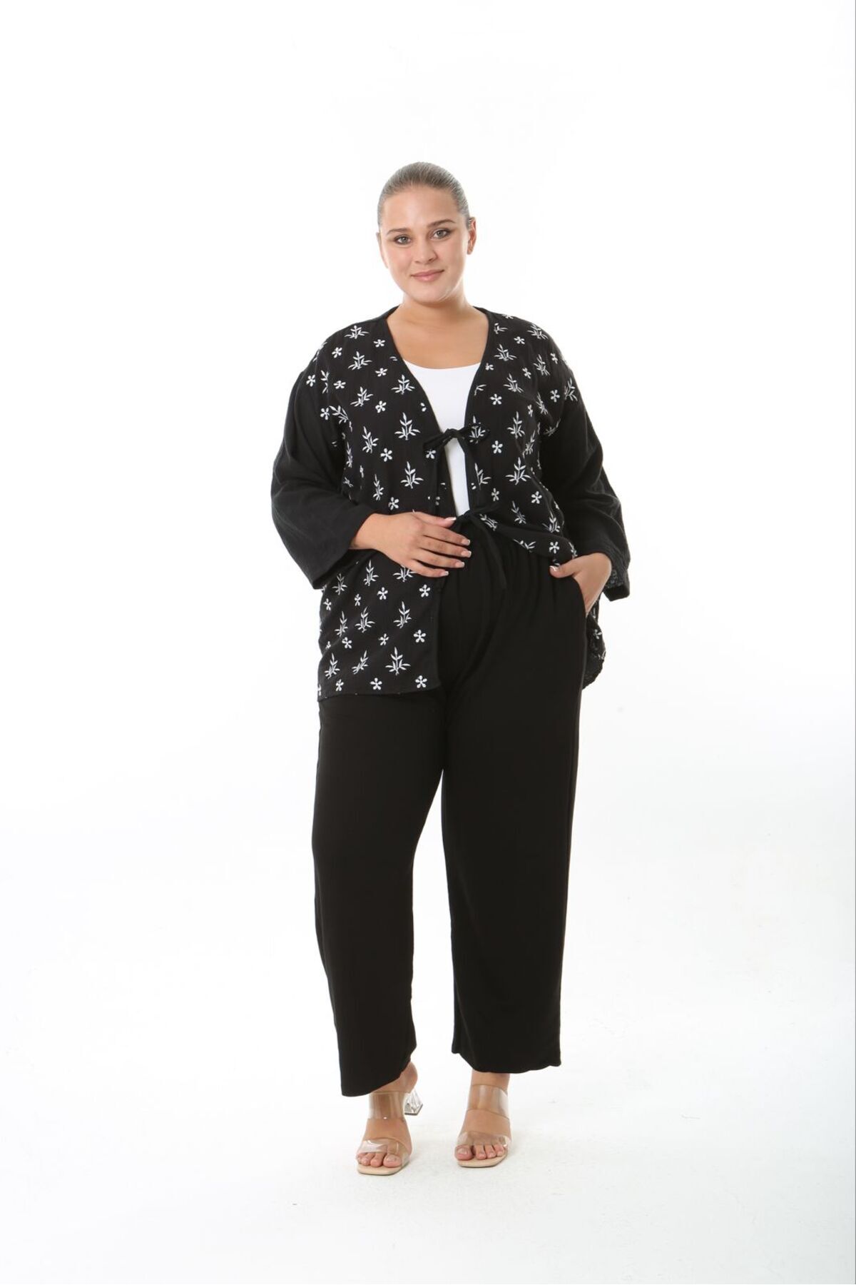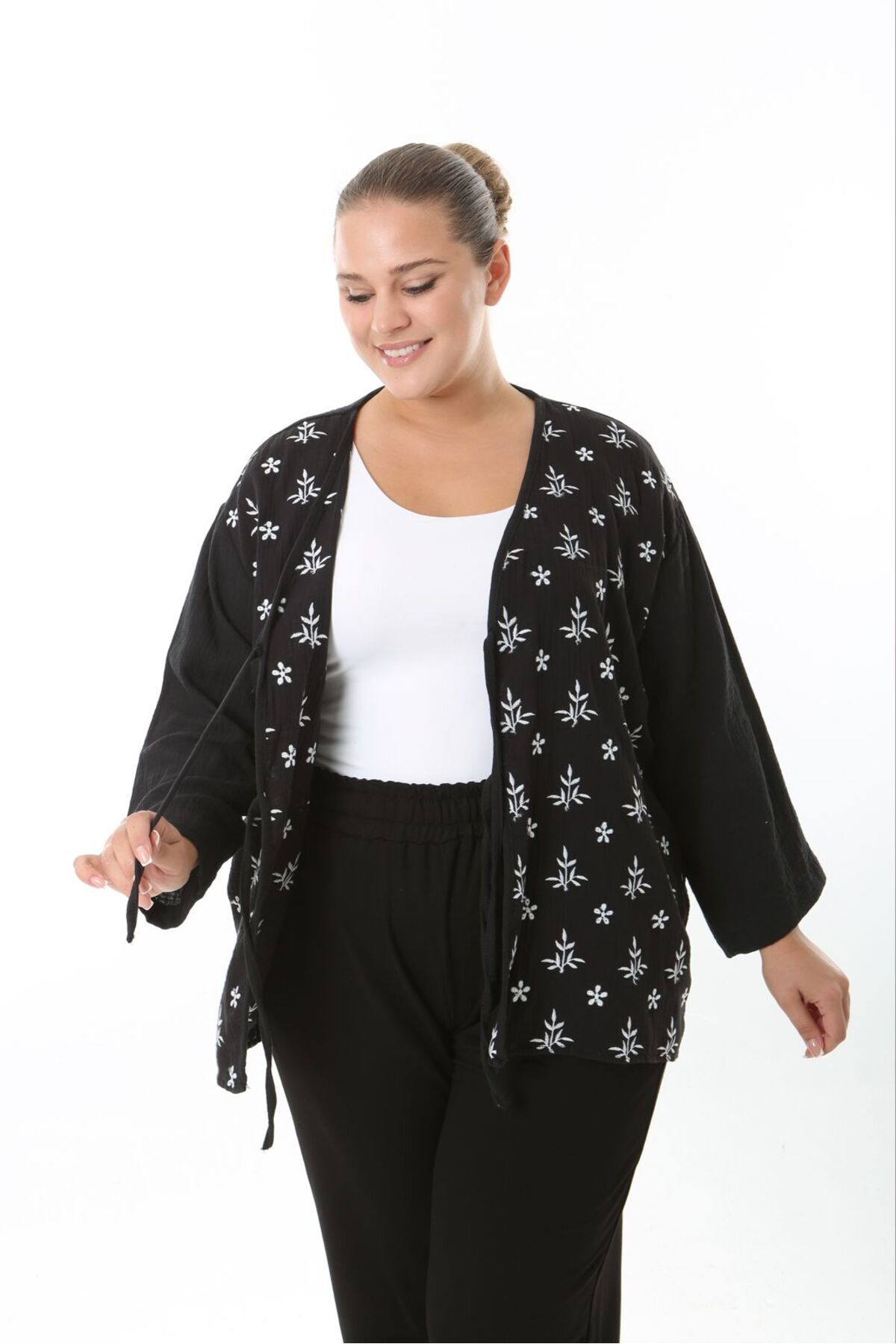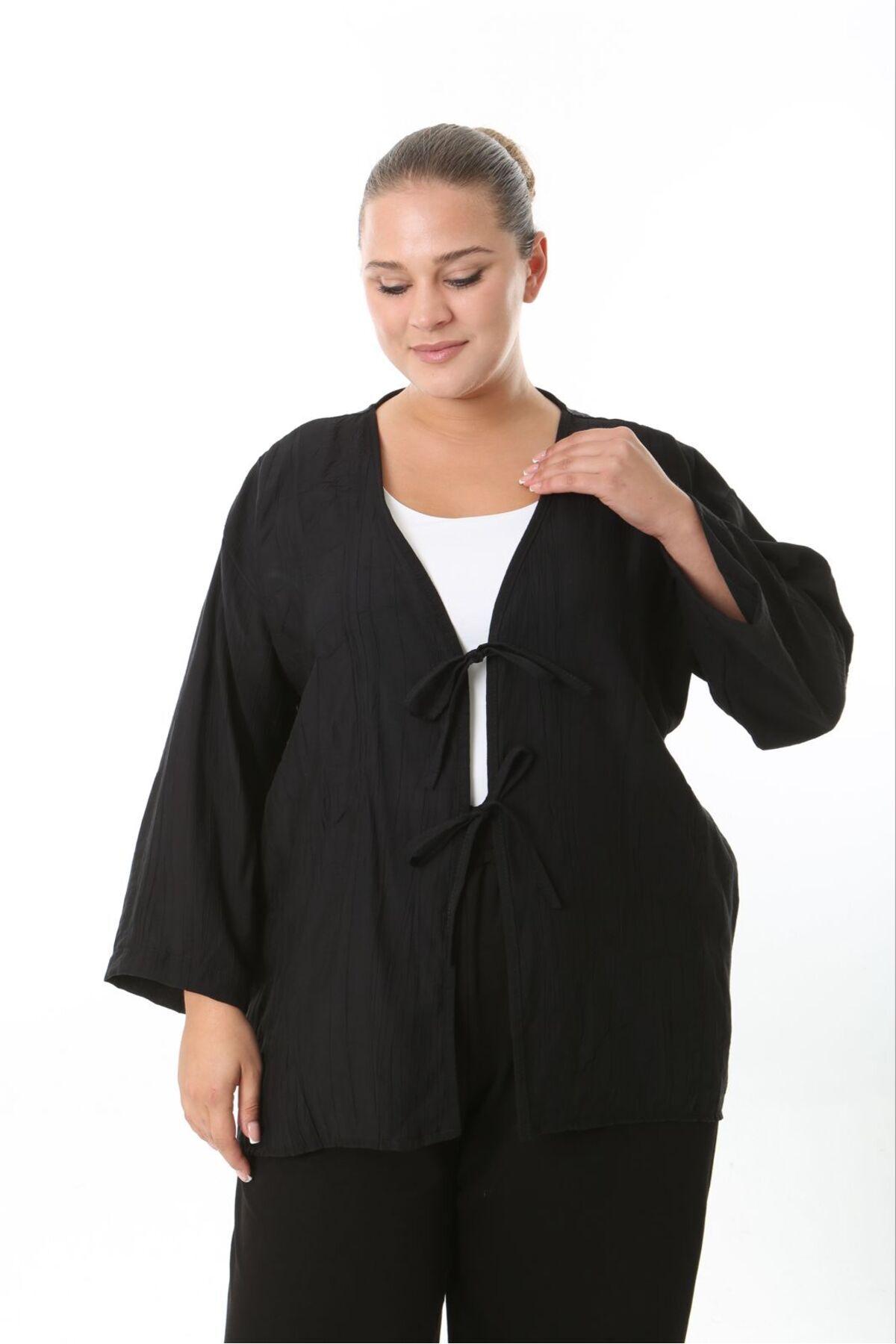 Kadın Büyük Beden Salaş Kesim Ön Bağcık Detaylı Dokuma Hırka 25002 Kadın Büyük Beden Salaş Kesim Ön Bağcık Detaylı Dokuma Hırka 25002 58-60