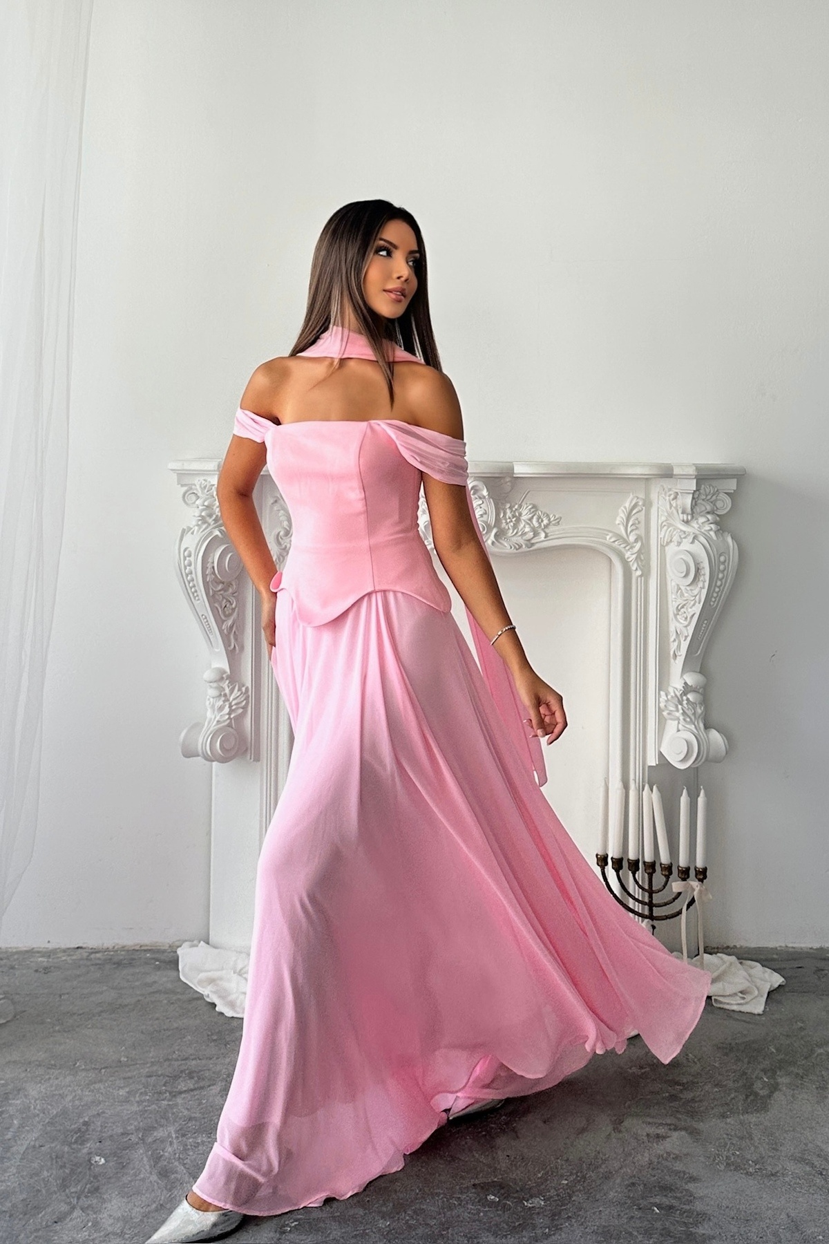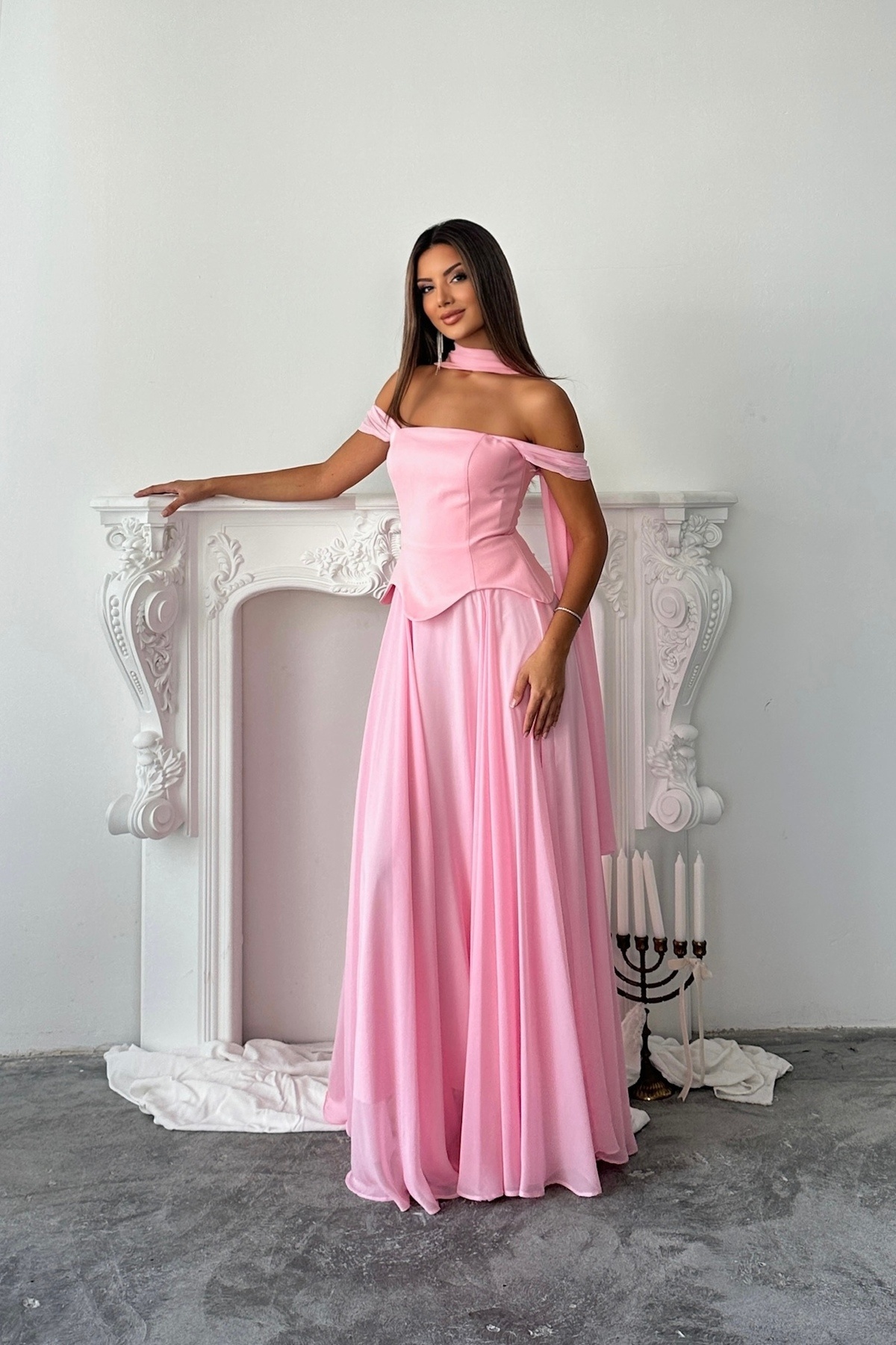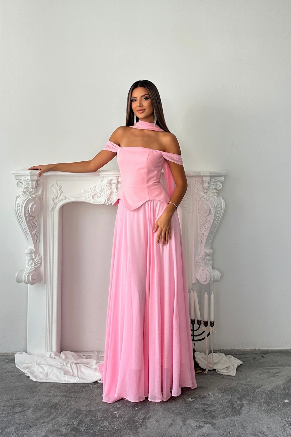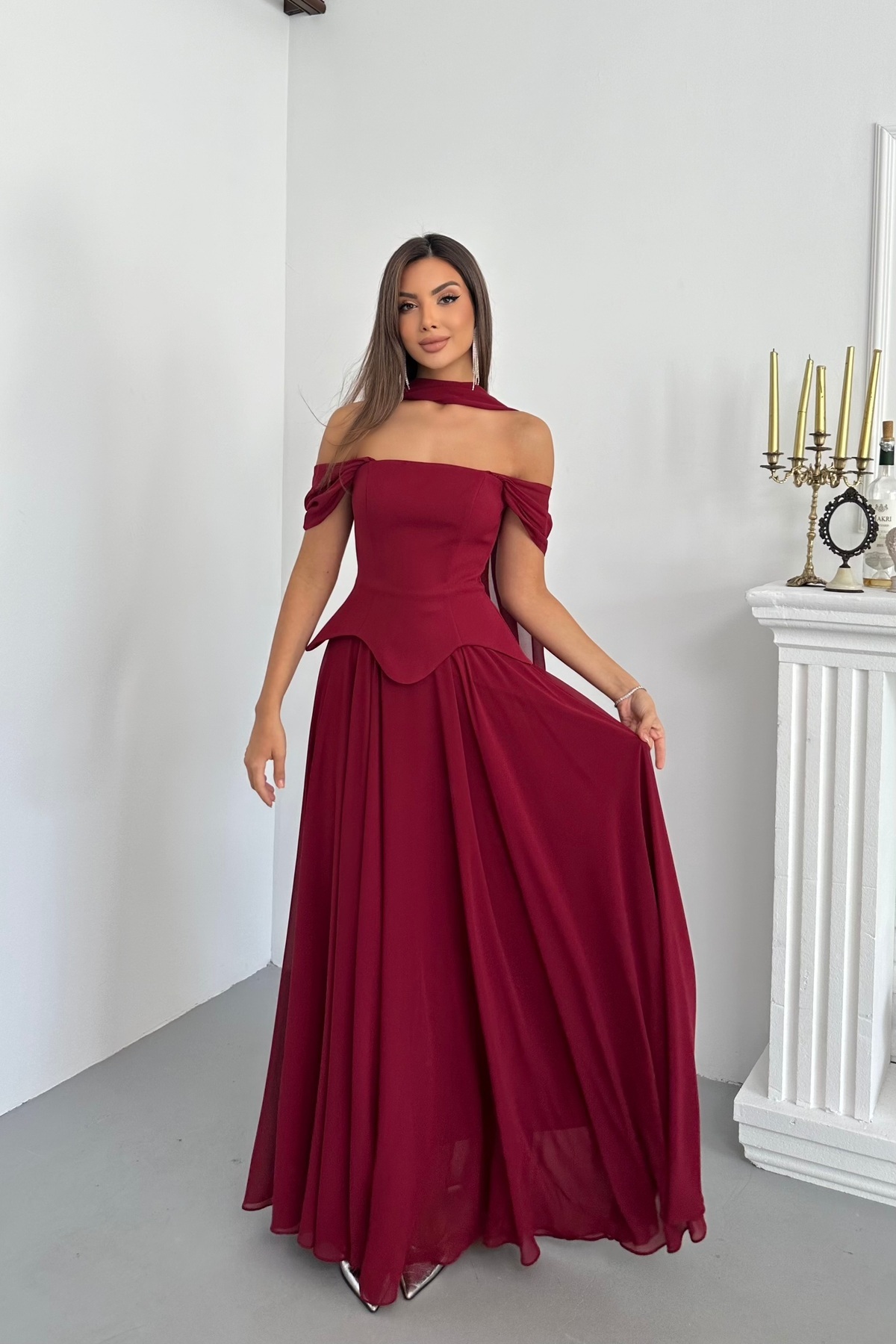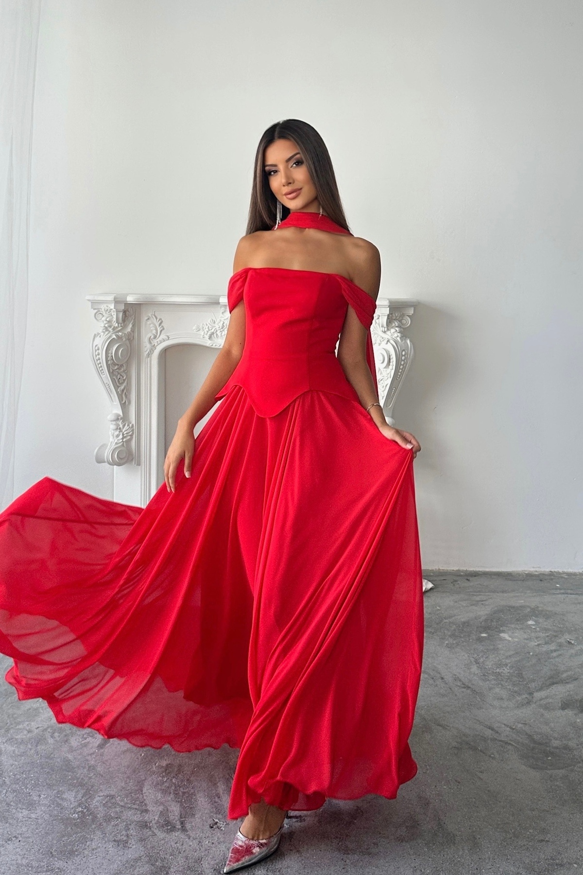 Şallı Ve Takım Görünümlü Düşük Omuz Krep Şifonlu Abiye Elbise Dar Kalıp Şallı Ve Takım Görünümlü Düşük Omuz Krep Şifonlu Abiye Elbise Dar Kalıp 9819 42
