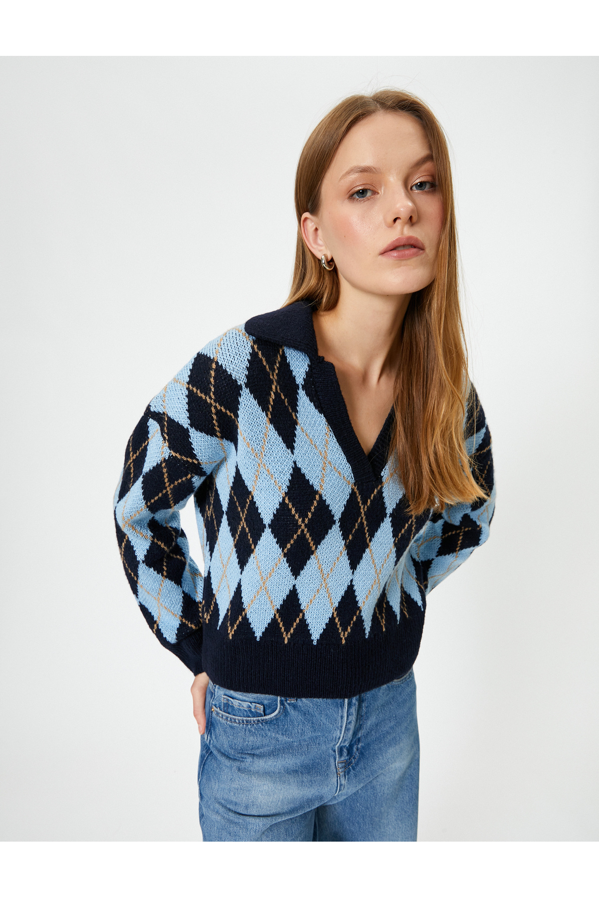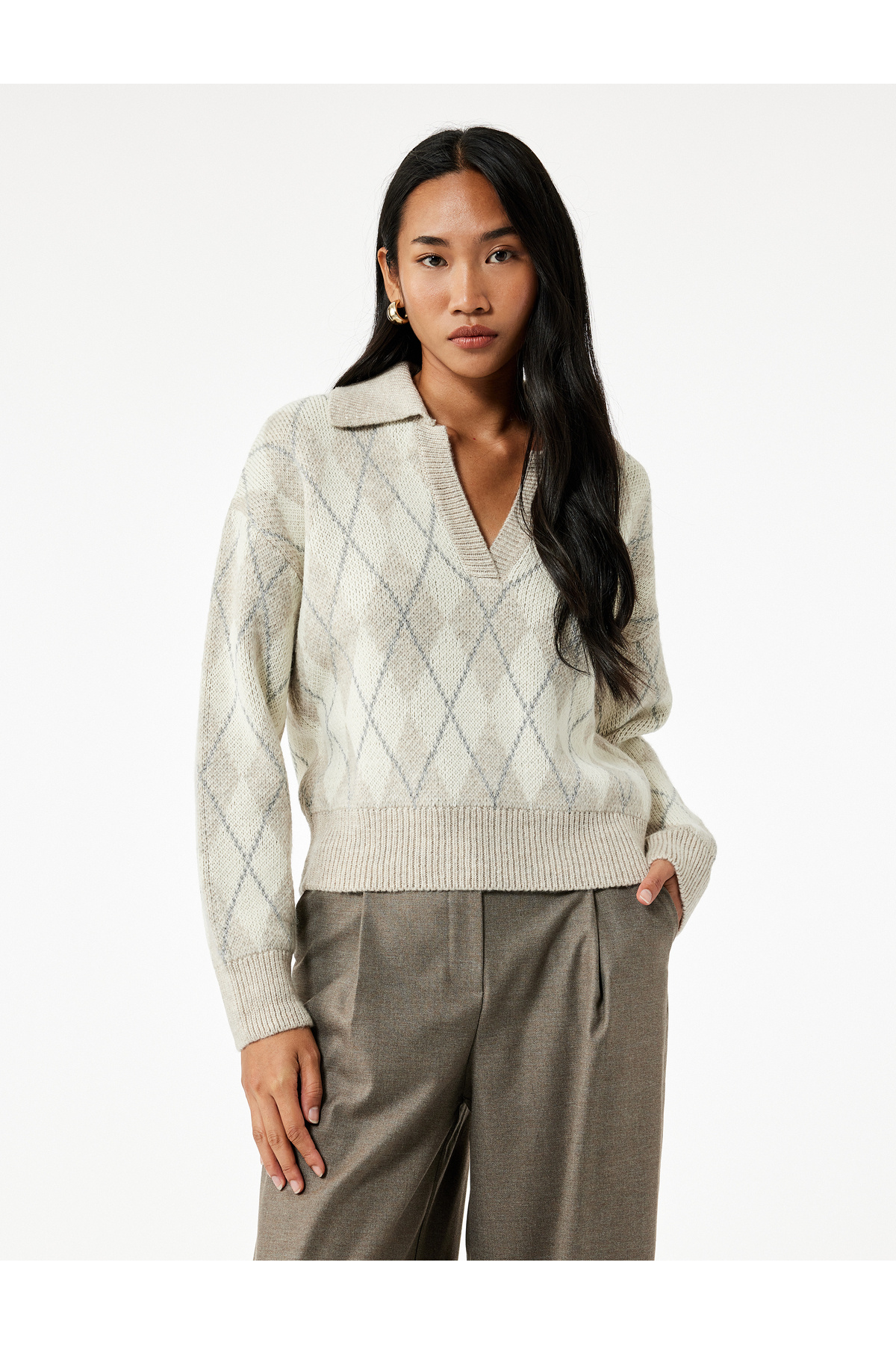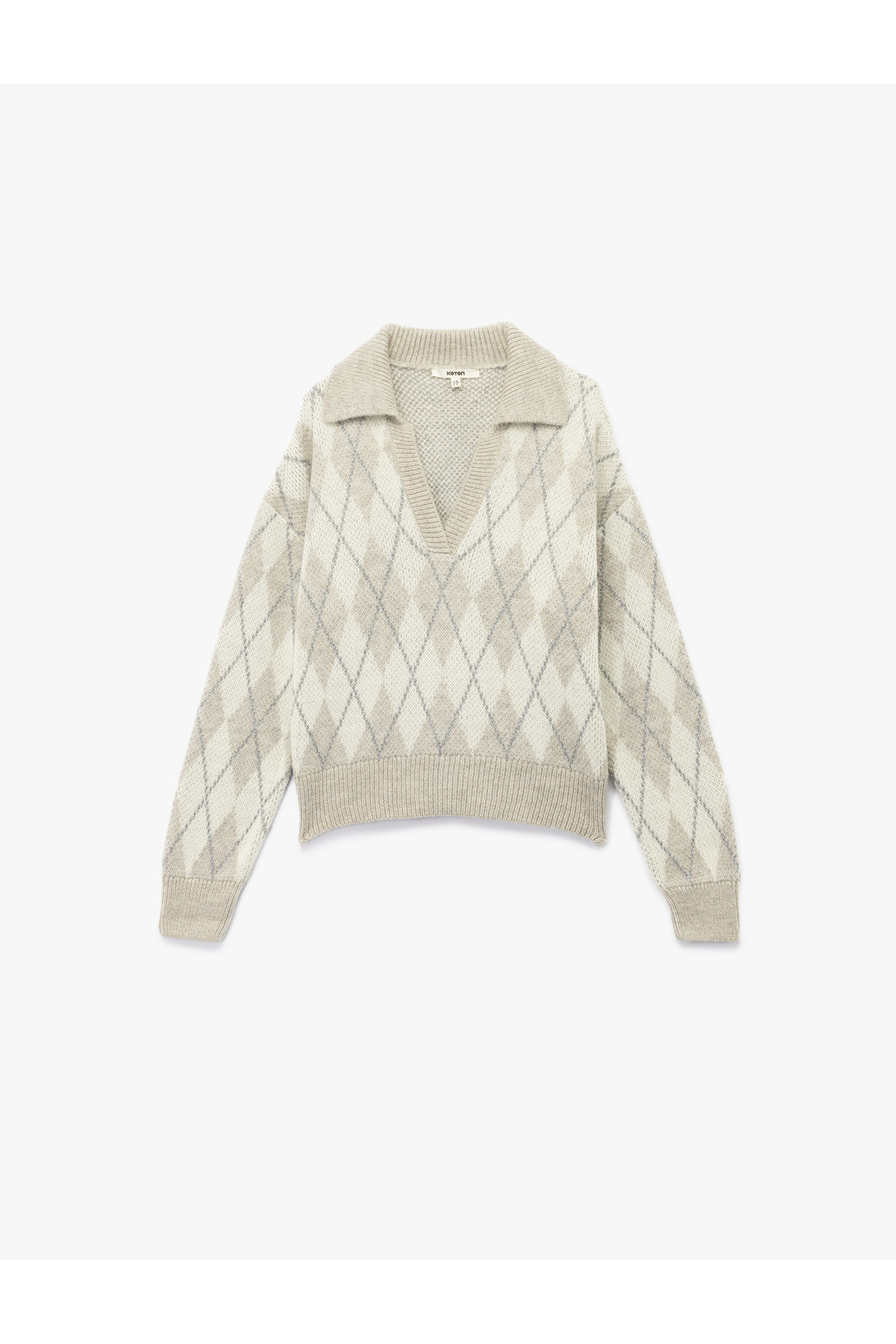 Uzun Kollu Baklava Desenli Polo Yaka Triko Oversize Kazak Uzun Kollu Baklava Desenli Polo Yaka Triko Oversize Kazak 6WAK90055HT XL