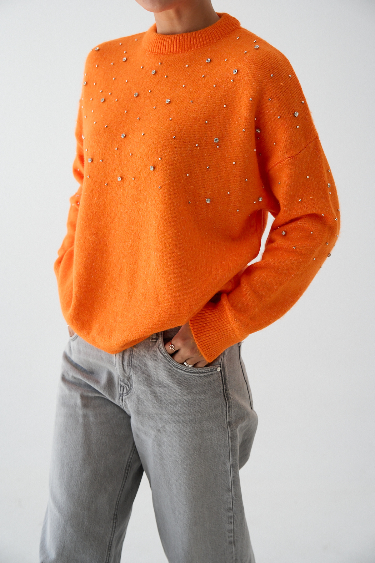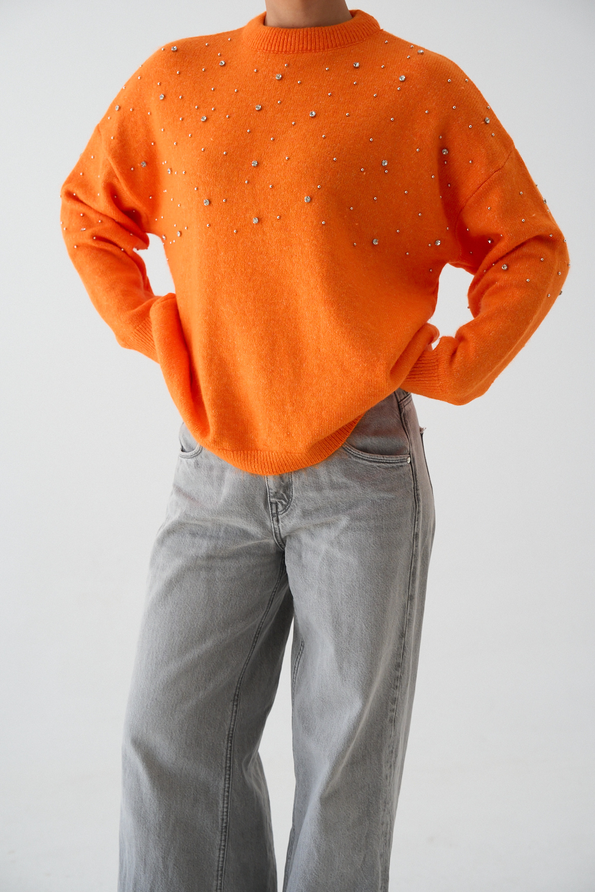 Kadın Turuncu Bisiklet Yaka İnci Taş İşlemeli Oversize Kazak Kadın Turuncu Bisiklet Yaka İnci Taş İşlemeli Oversize Kazak TK231106 Standart