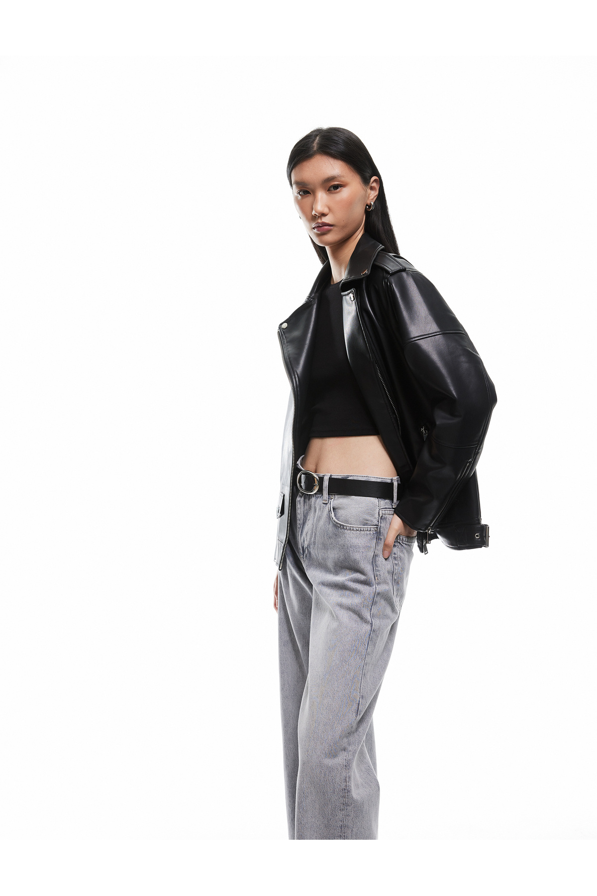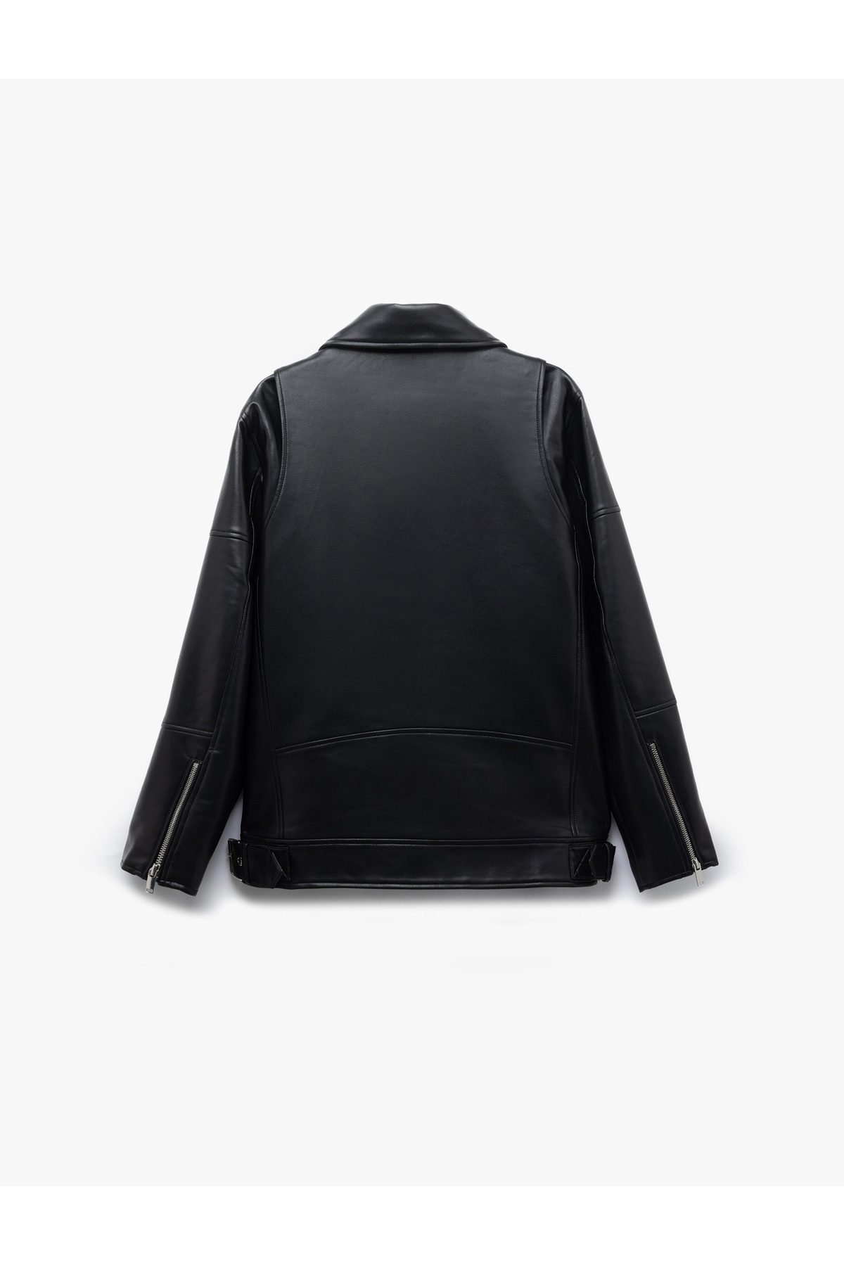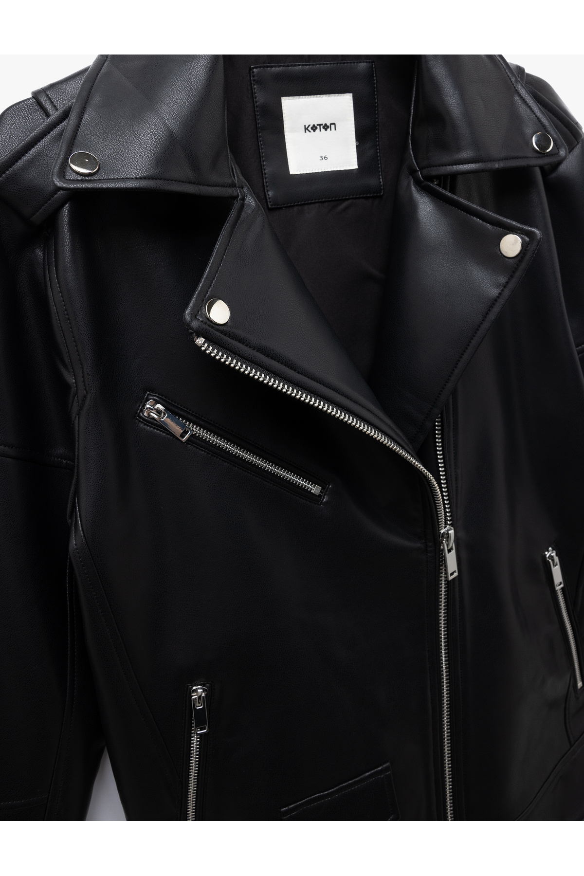 Fermuarlı Cepli Uzun Kollu Suni Deri Biker Ceket Fermuarlı Cepli Uzun Kollu Suni Deri Biker Ceket 6WAK20015EW 42