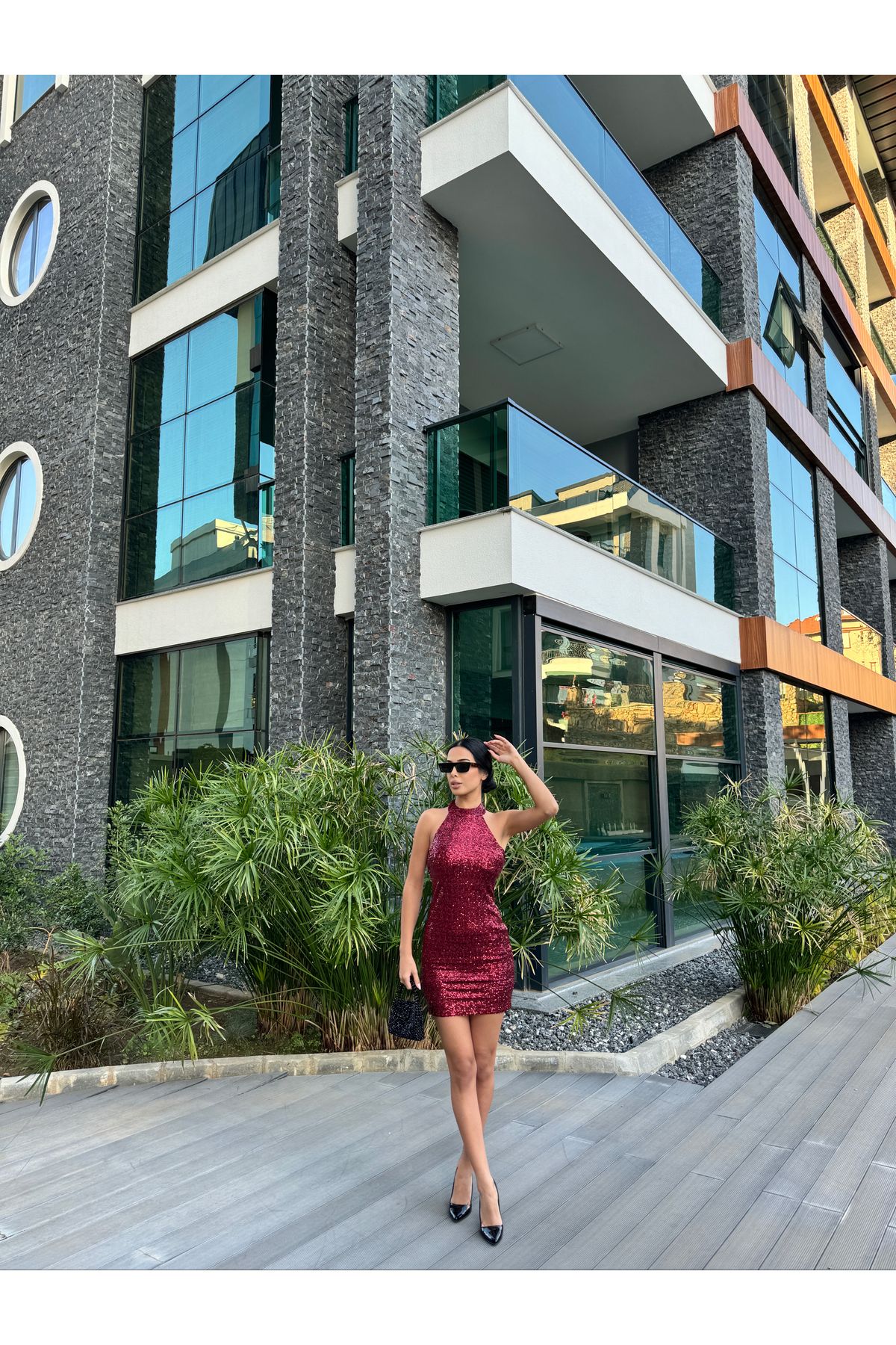 Kadın İthal Pul Payet Taş Detay Elbise Kadın İthal Pul Payet Taş Detay Elbise imep L