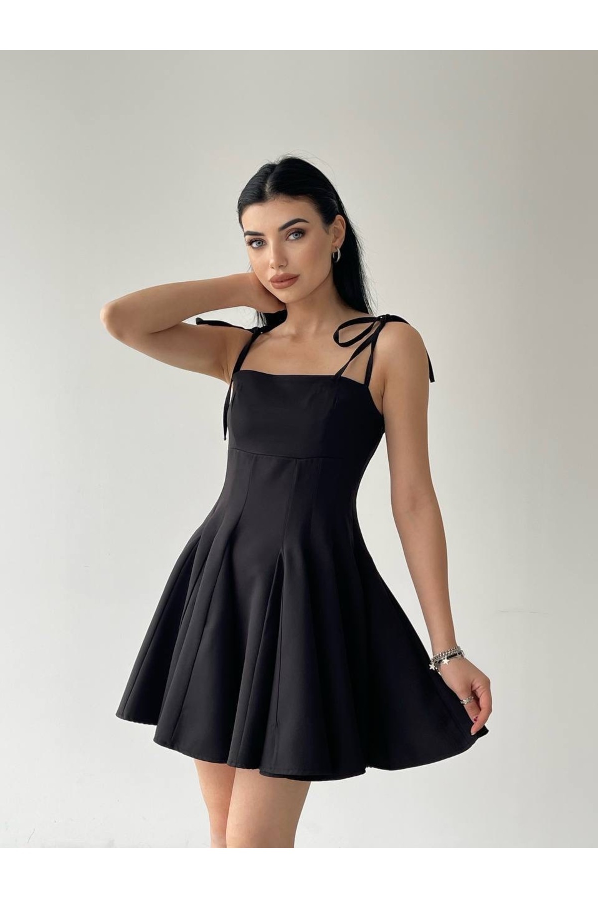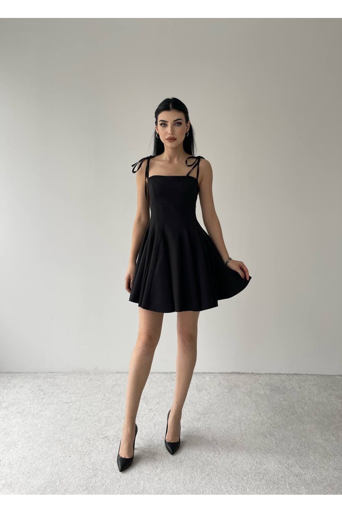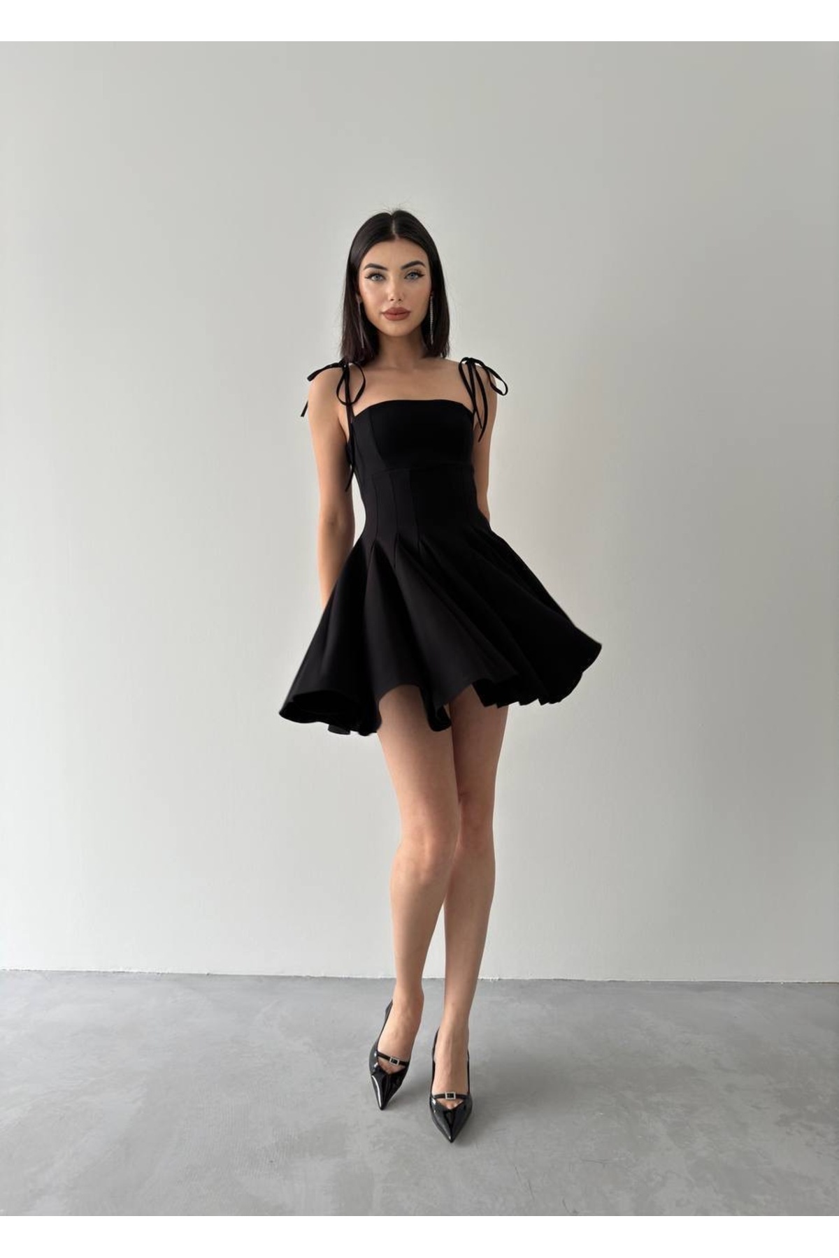 İp Askılı Kloş Mini Elbise İp Askılı Kloş Mini Elbise VE0016 L