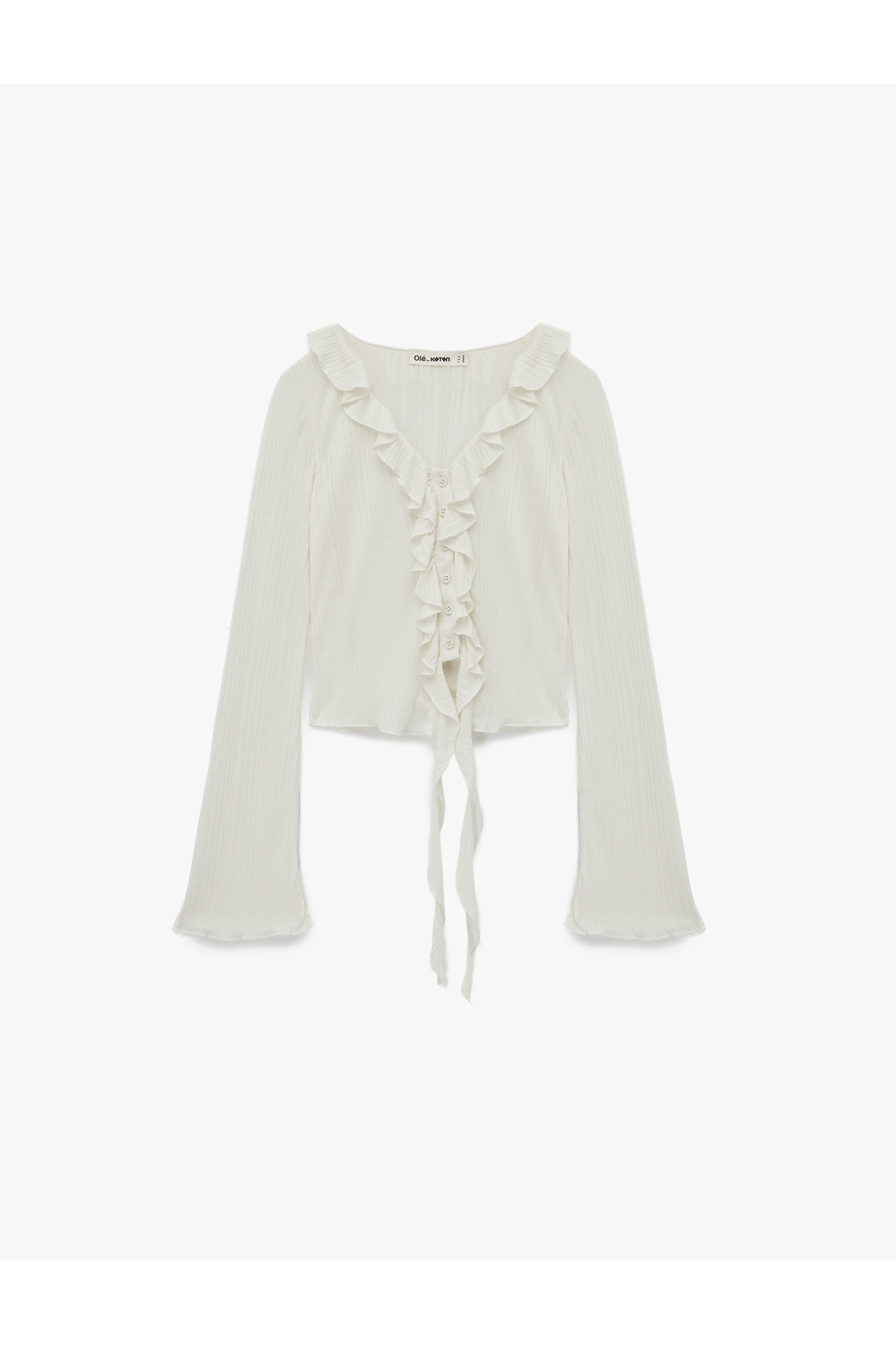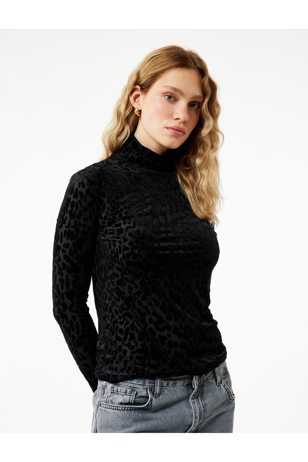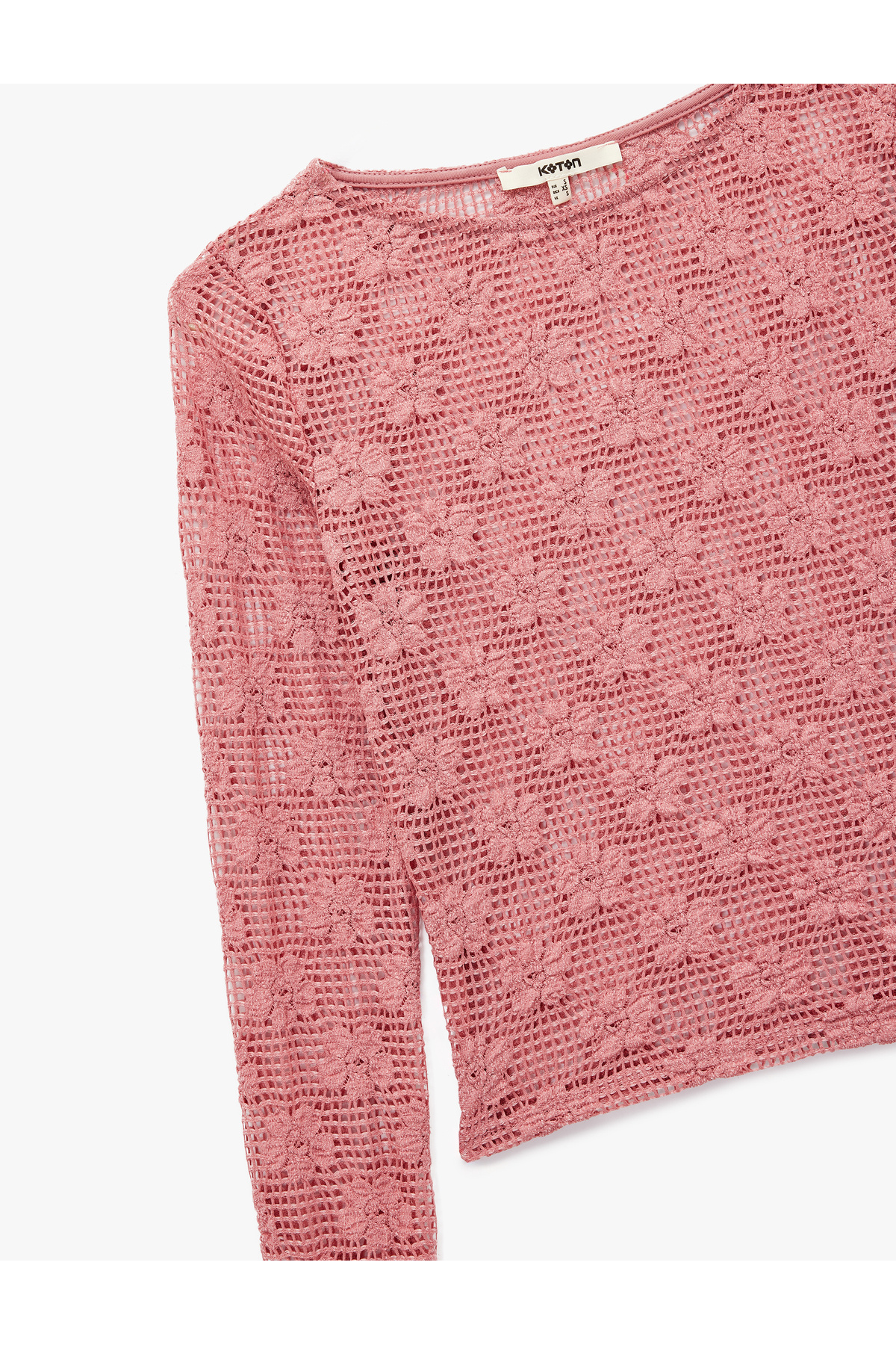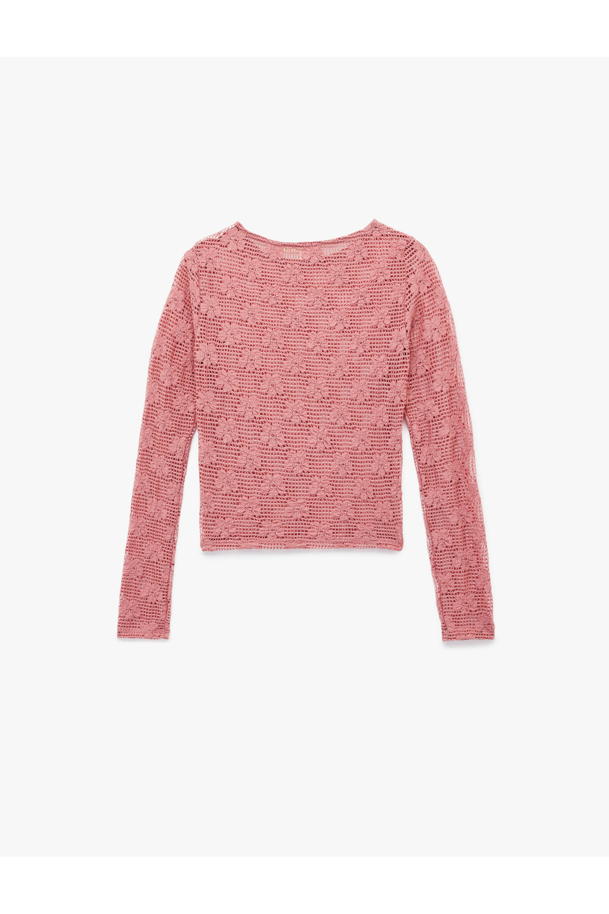 Transparan Uzun Kollu Bisiklet Yaka Çiçekli Dantelli Bluz Transparan Uzun Kollu Bisiklet Yaka Çiçekli Dantelli Bluz 6WAK80133EK XL