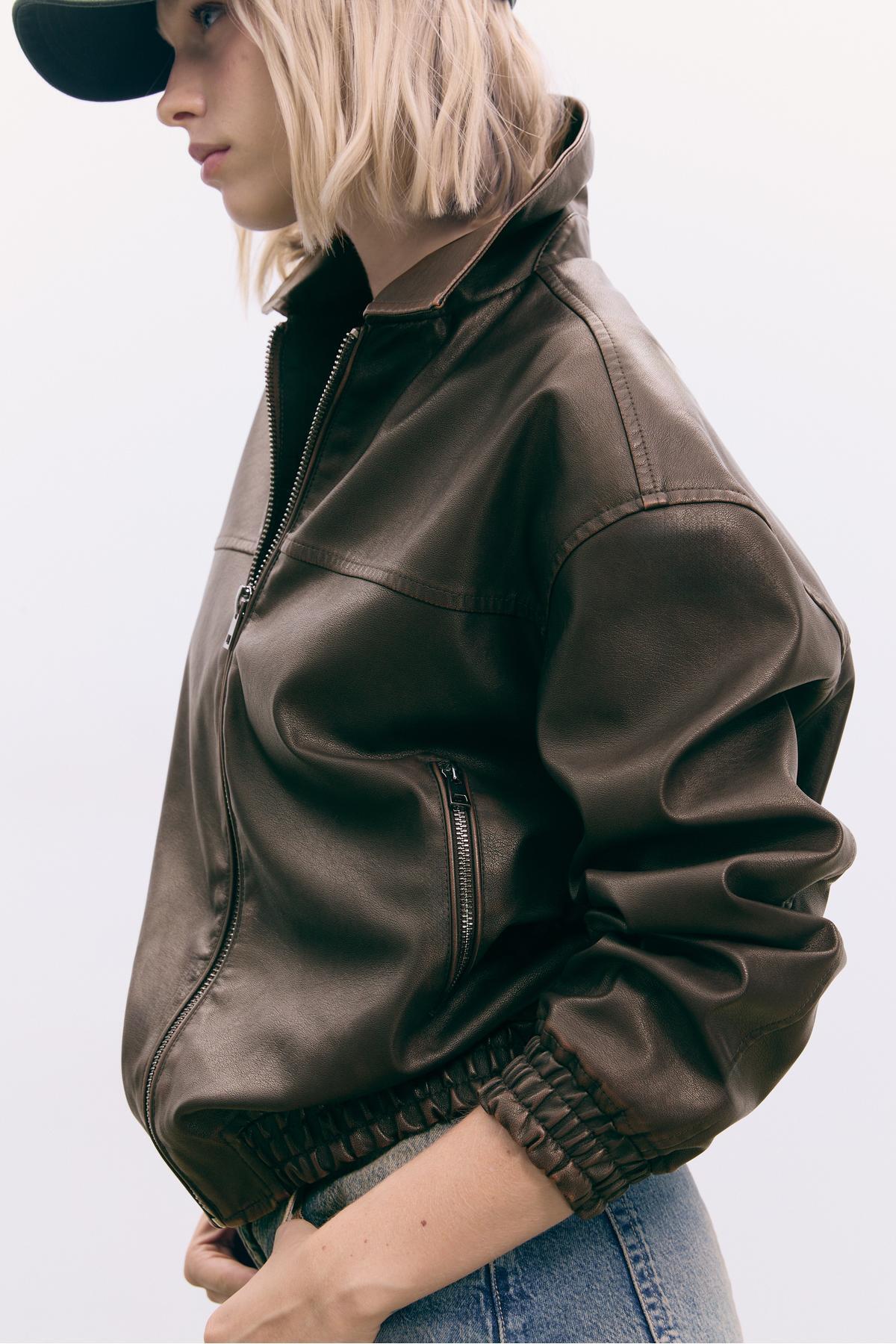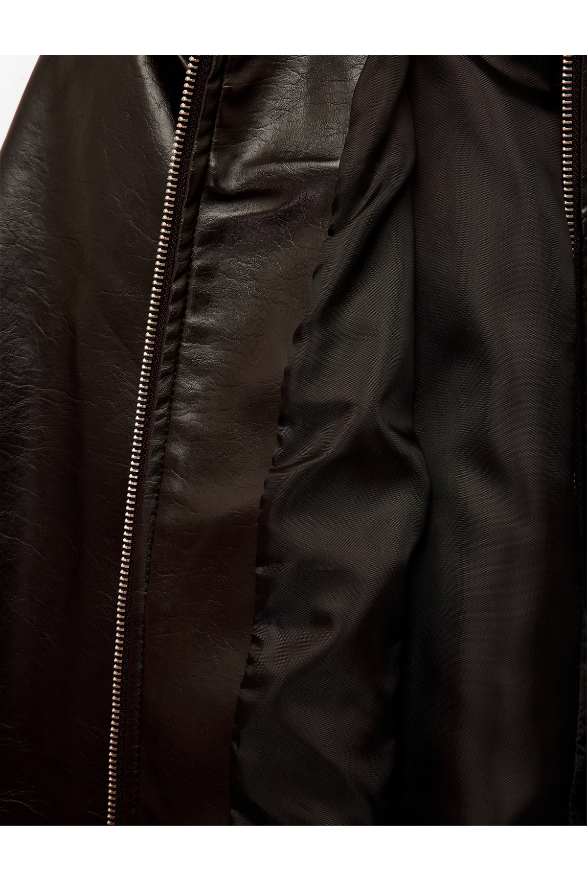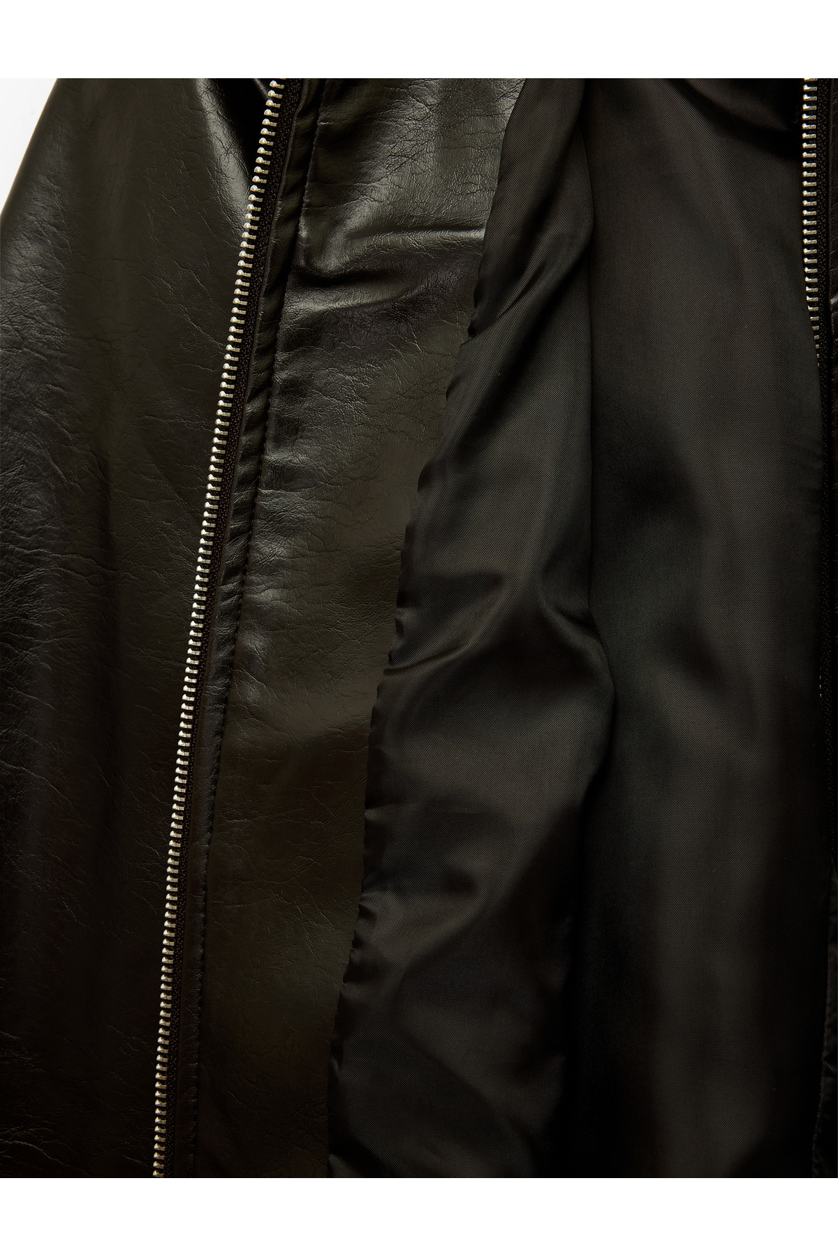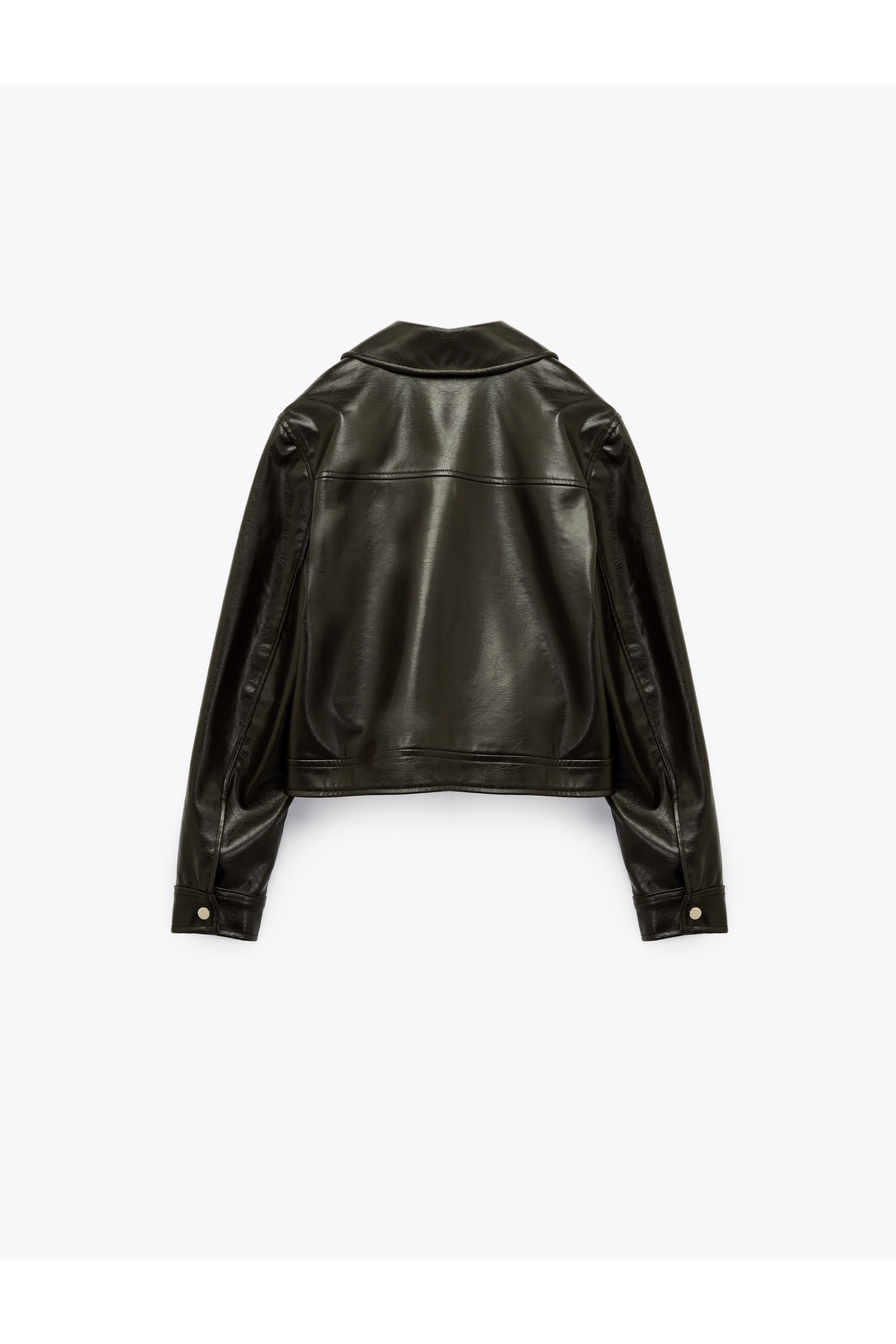 Fermuarlı Uzun Kollu Gömlek Yaka Cepli Crop Suni Deri Ceket Fermuarlı Uzun Kollu Gömlek Yaka Cepli Crop Suni Deri Ceket 6WAK20299EW 42