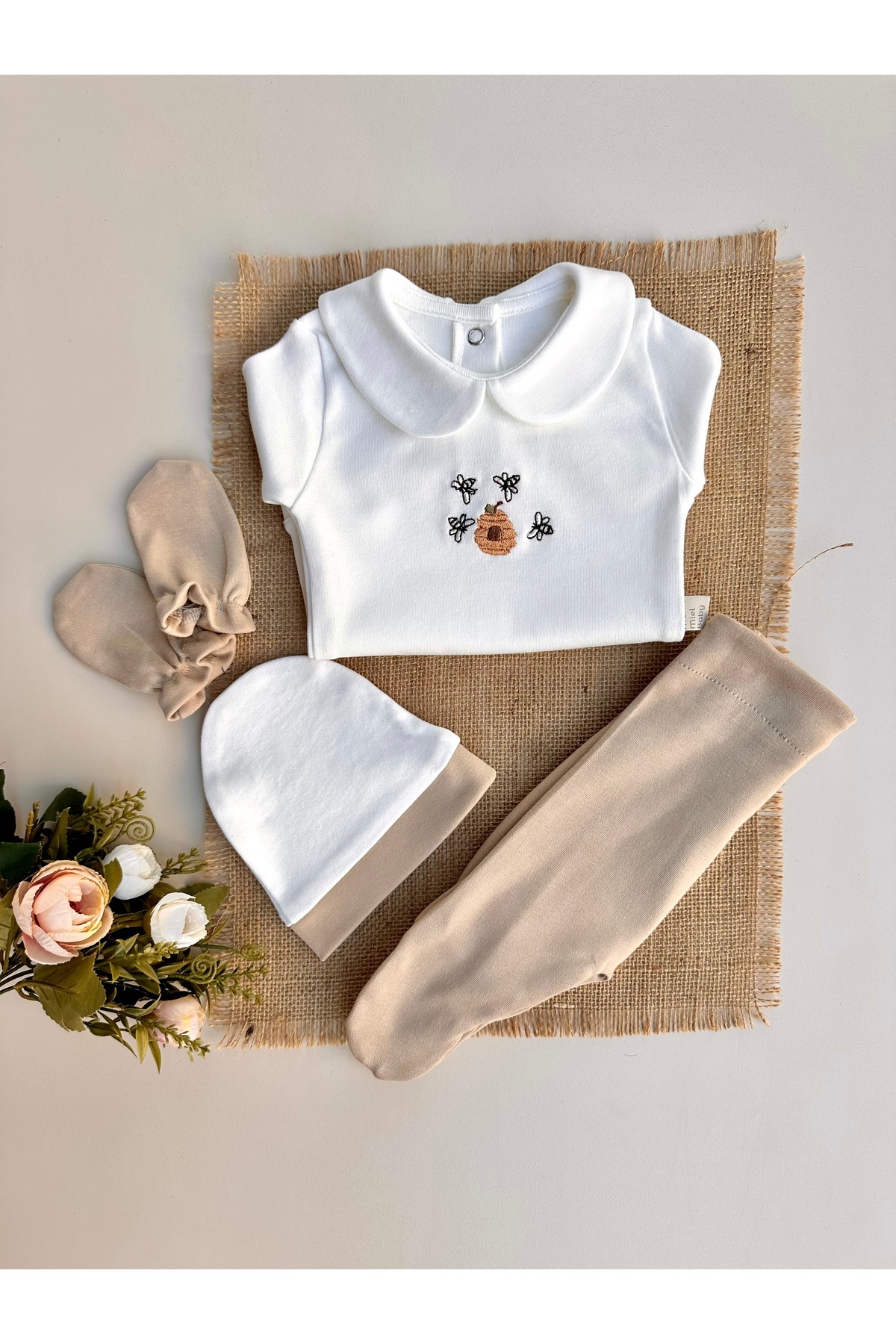 Sütlü Kahve Bal Arısı Nakışlı Yenidoğan Set (Body, Pantolon, Bere, Eldiven) Sütlü Kahve Bal Arısı Nakışlı Yenidoğan Set (Body, Pantolon, Bere, Eldiven) MMBBALARISIKAHVE 3-6 AY