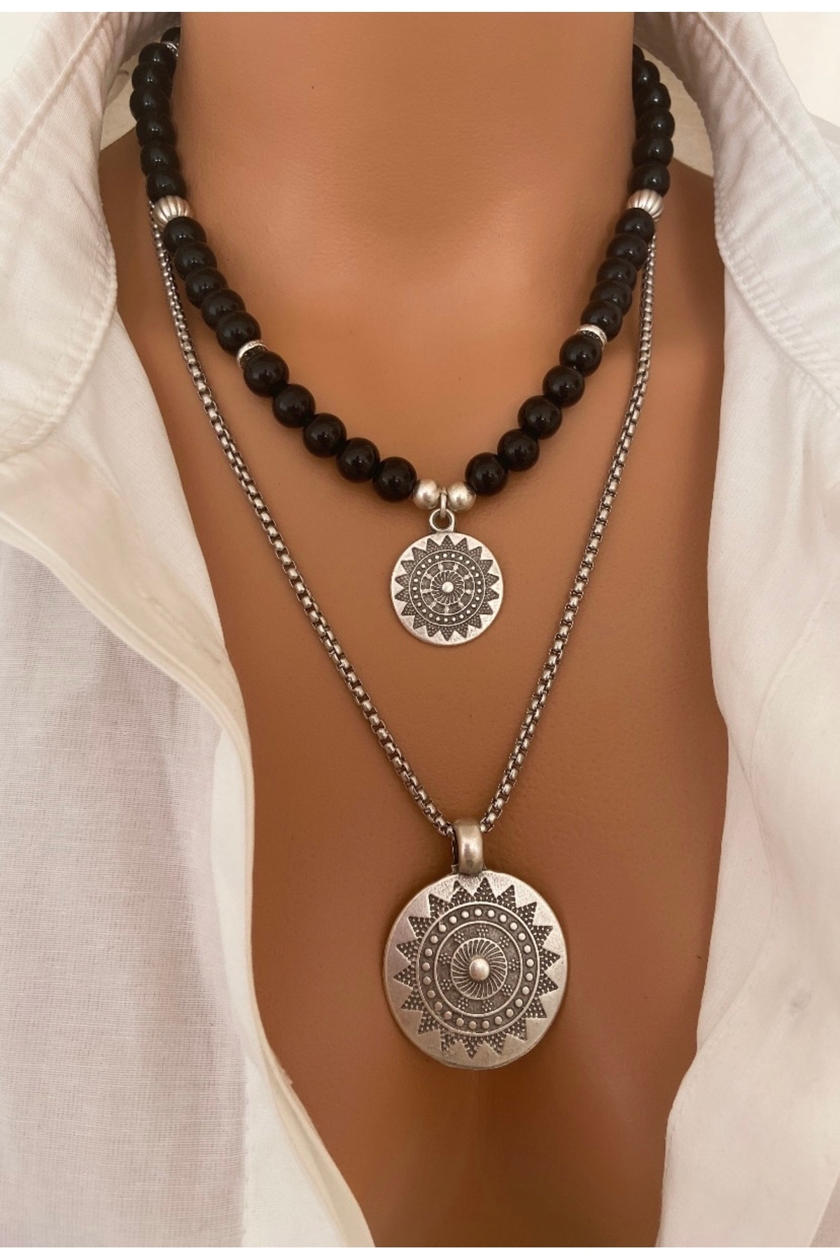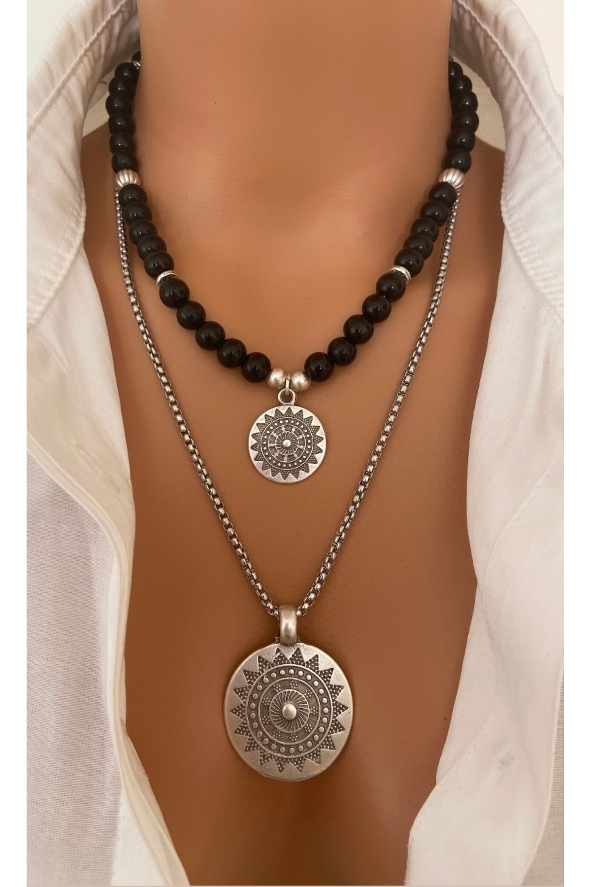 * 2 KOLYE * DOĞAL TAŞ Siyah Oniks ÇELİK Zincir GÜMÜŞ Kolye Anne Sevgili Özel Gün HEDİYE * 2 KOLYE * DOĞAL TAŞ Siyah Oniks ÇELİK Zincir GÜMÜŞ Kolye Anne Sevgili Özel Gün HEDİYE siyahgümüşikili M