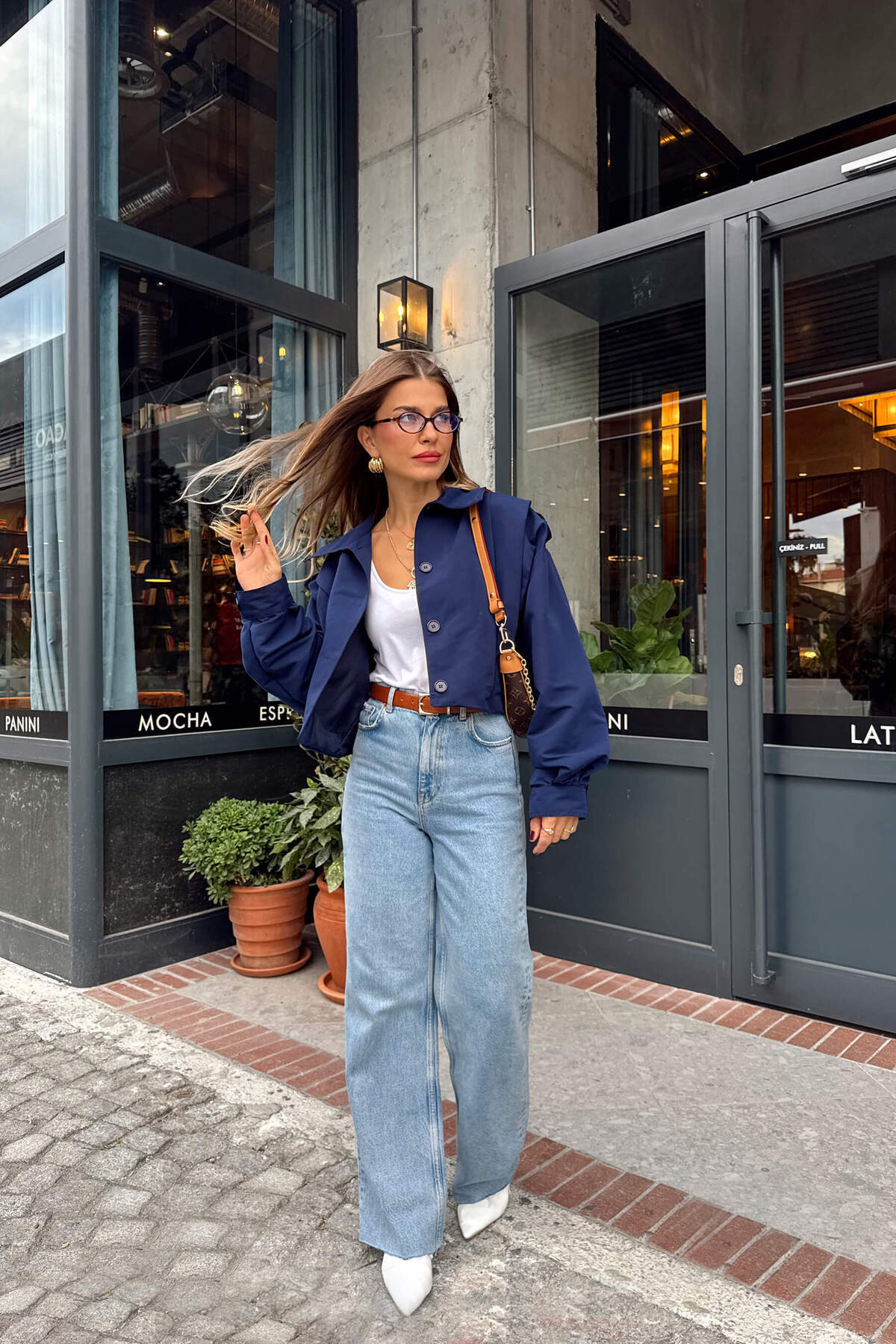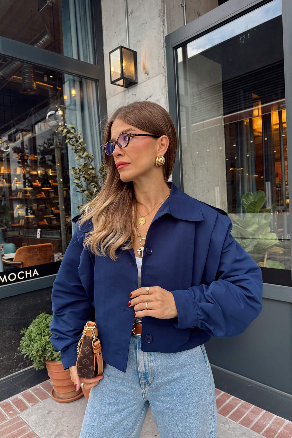 Lacivert Pile Detaylı Astarlı Ceket Lacivert Pile Detaylı Astarlı Ceket CKT1049 XL
