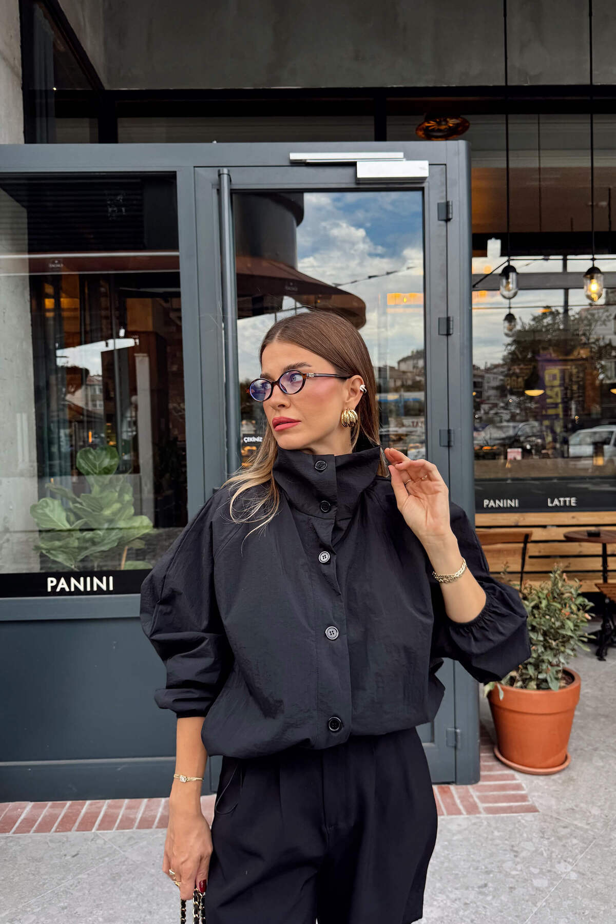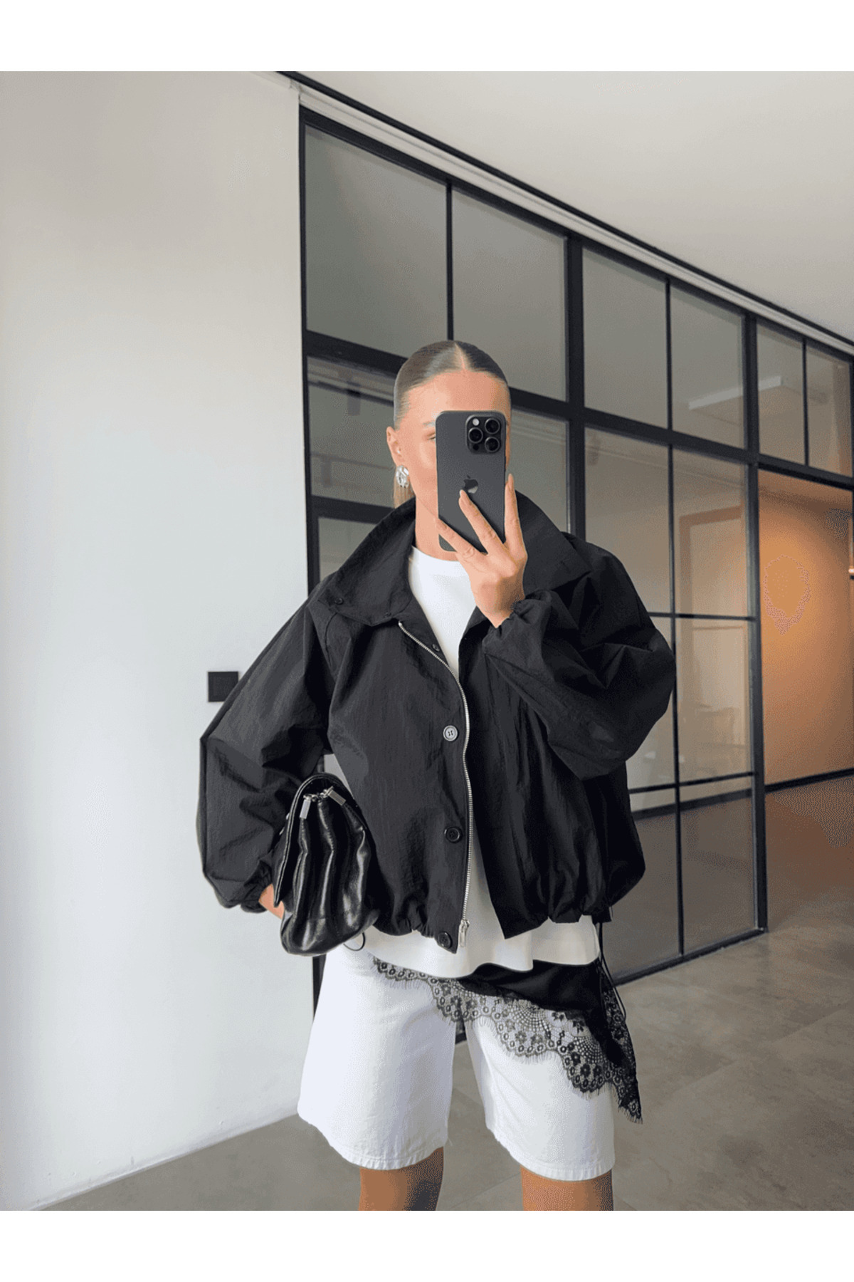 Siyah Dik Yaka Altı Lastikli Bomber Ceket Siyah Dik Yaka Altı Lastikli Bomber Ceket CKT1047 Standart