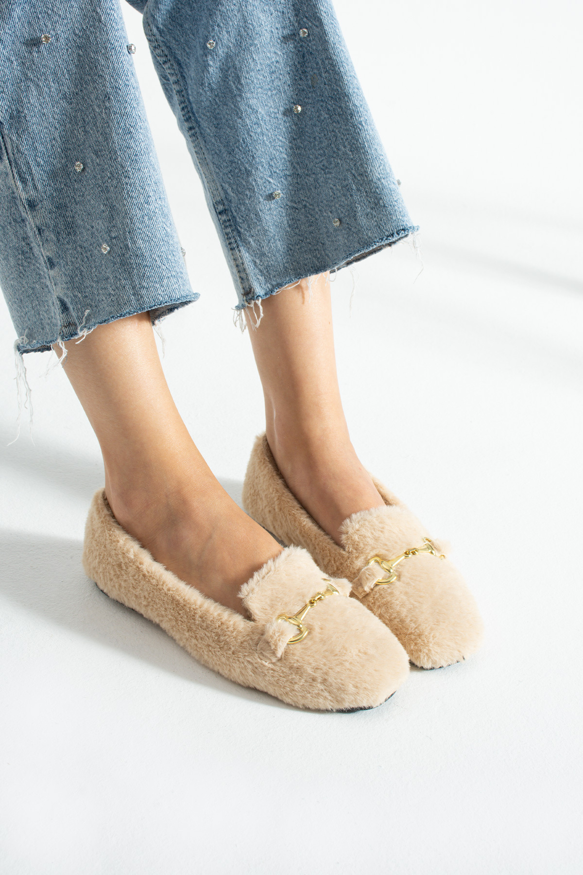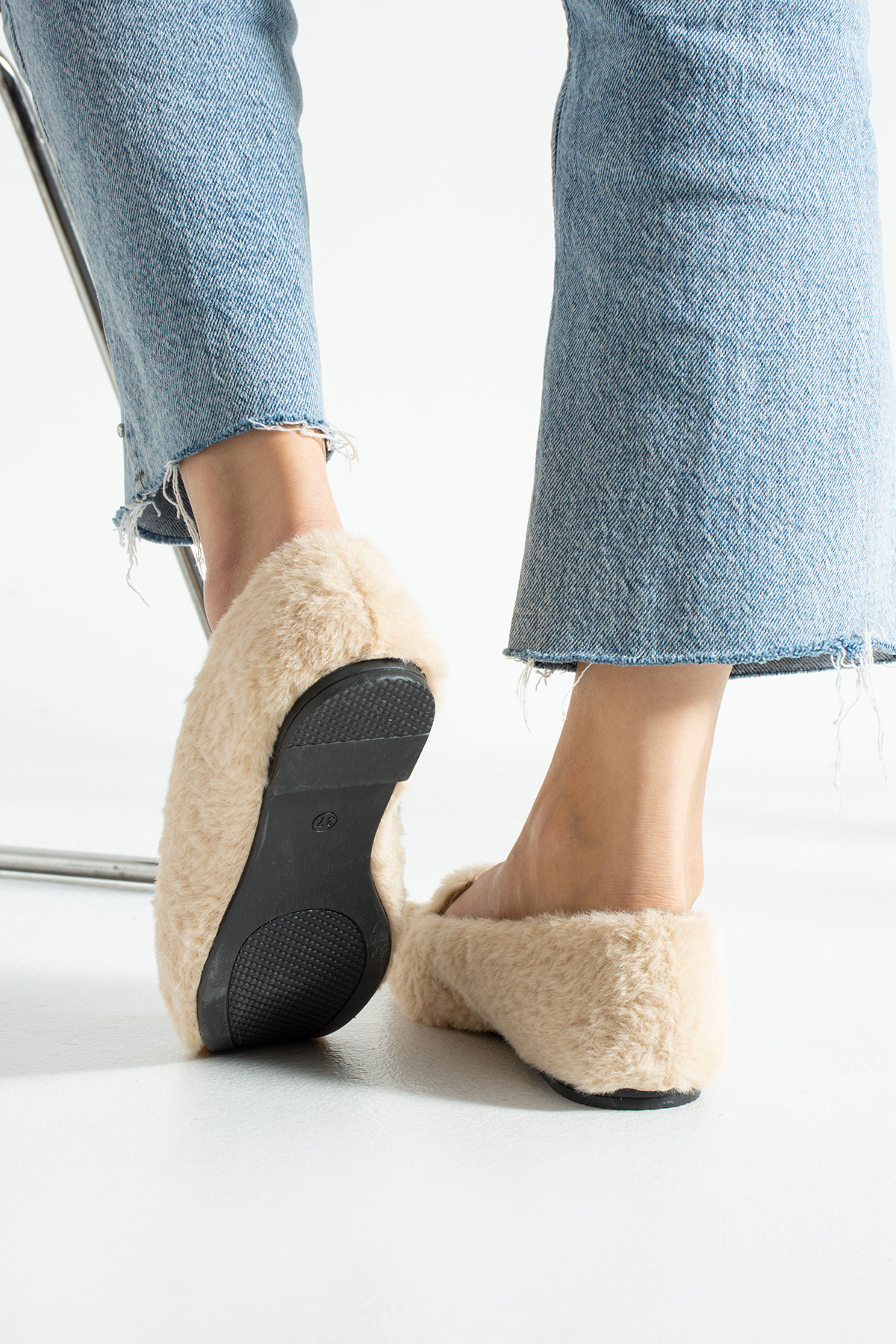 Kadın Bej Tokalı Kışlık Babet Ev ve Dış Mekan Ayakkabısı Kadın Bej Tokalı Kışlık Babet Ev ve Dış Mekan Ayakkabısı MD25520 40