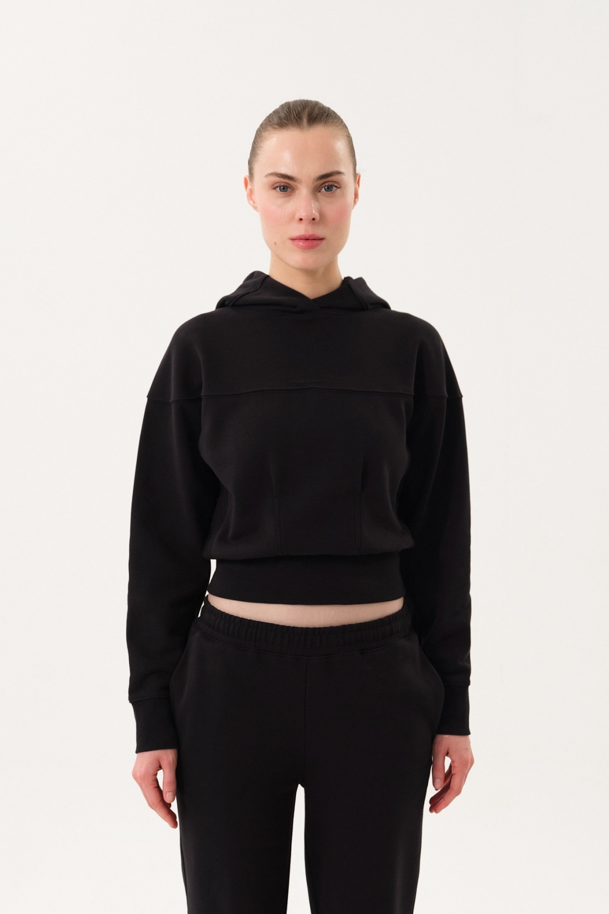 Relaxed Fit Basic Crop Hoodie Siyah Relaxed Fit Basic Crop Hoodie Siyah B-26-06-03 2XL