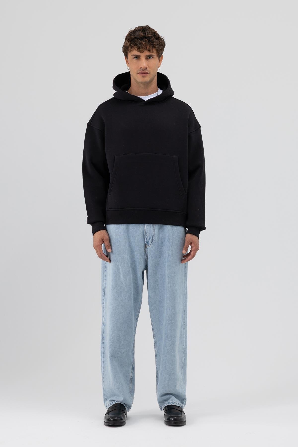 Basic Kapüşonlu Boxy Fit Sweatshirt Siyah Basic Kapüşonlu Boxy Fit Sweatshirt Siyah V70-87 XL