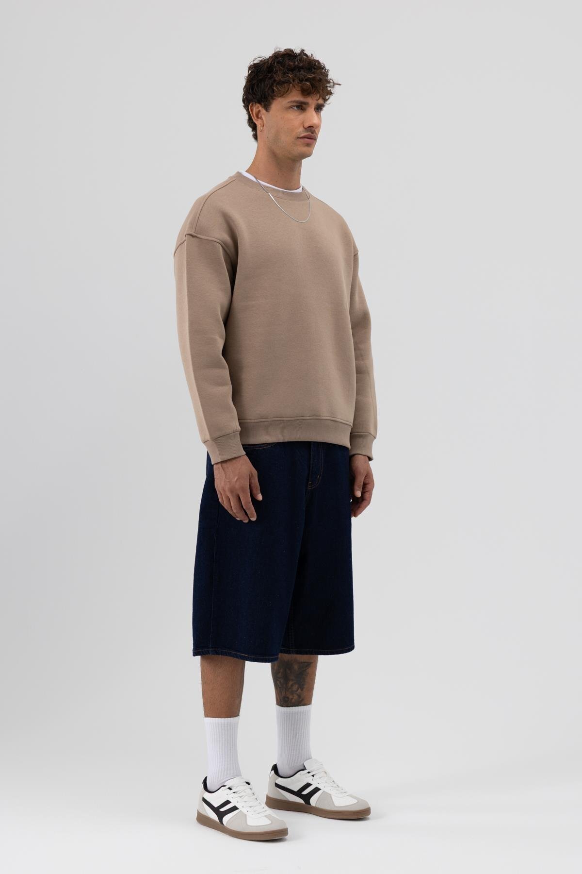 Basic Bisiklet Yaka Oversize Sweatshirt Vizon Basic Bisiklet Yaka Oversize Sweatshirt Vizon V70-79 XL