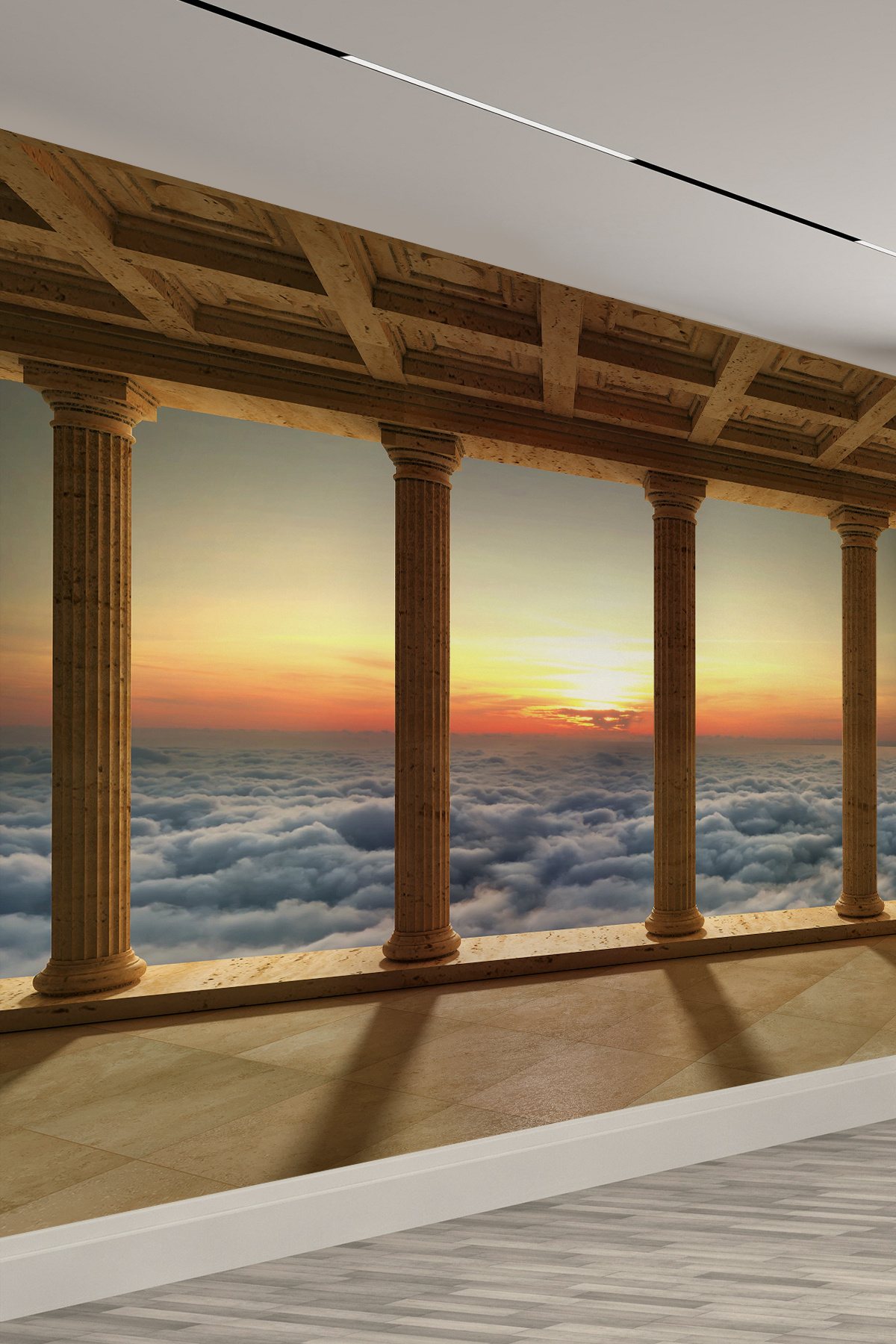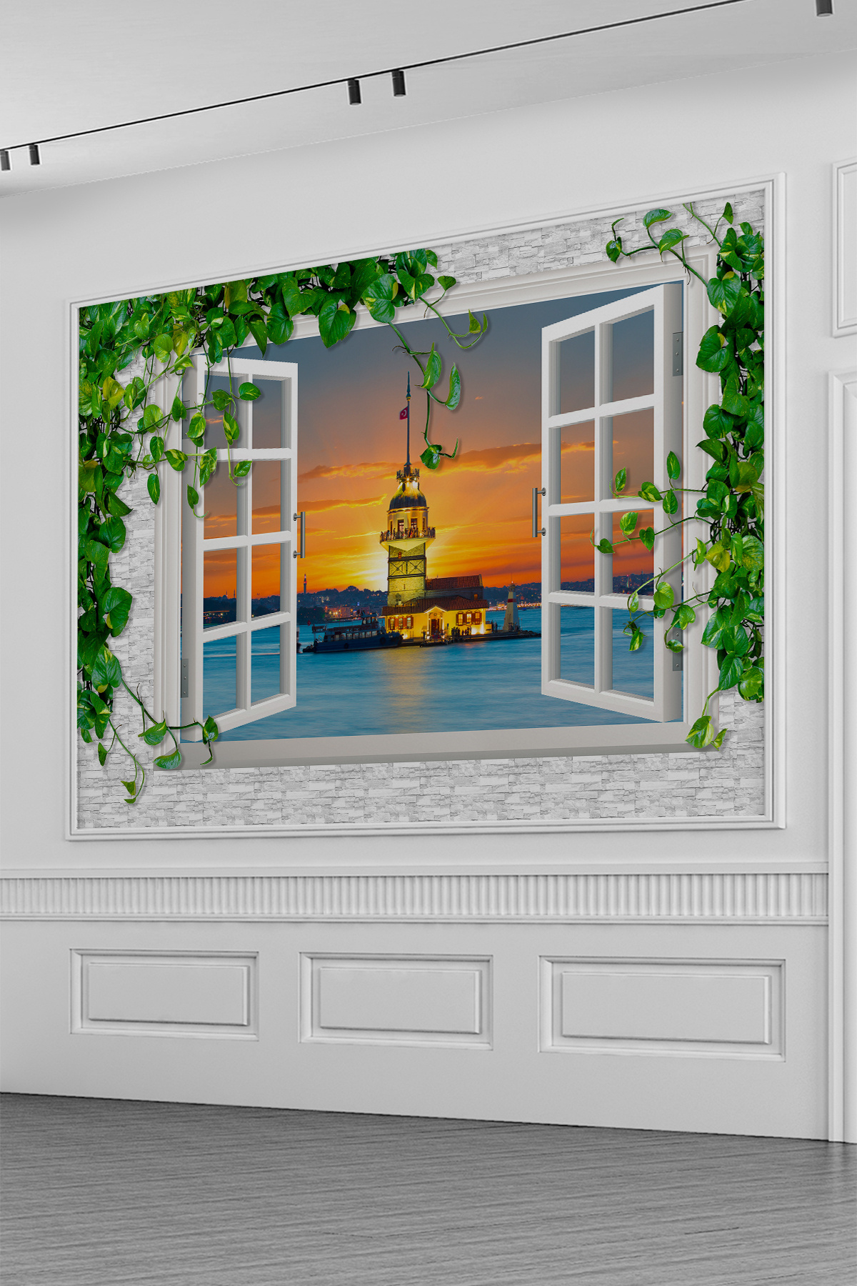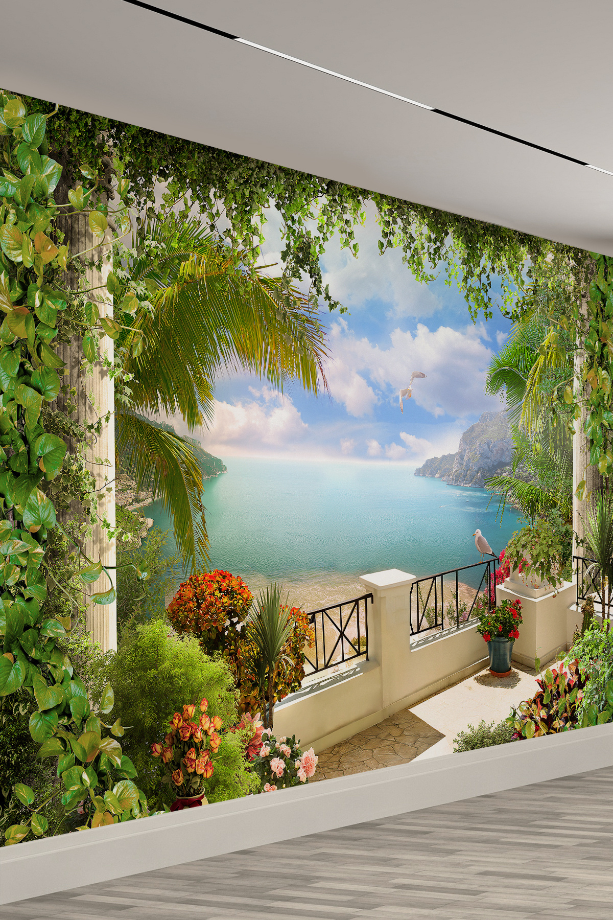 3D Açık Pencere Balkon ve Şelale Manzaralı Tek Parça Duvar Kağıdı 3D Açık Pencere Balkon ve Şelale Manzaralı Tek Parça Duvar Kağıdı DW2025-793 450 x 240