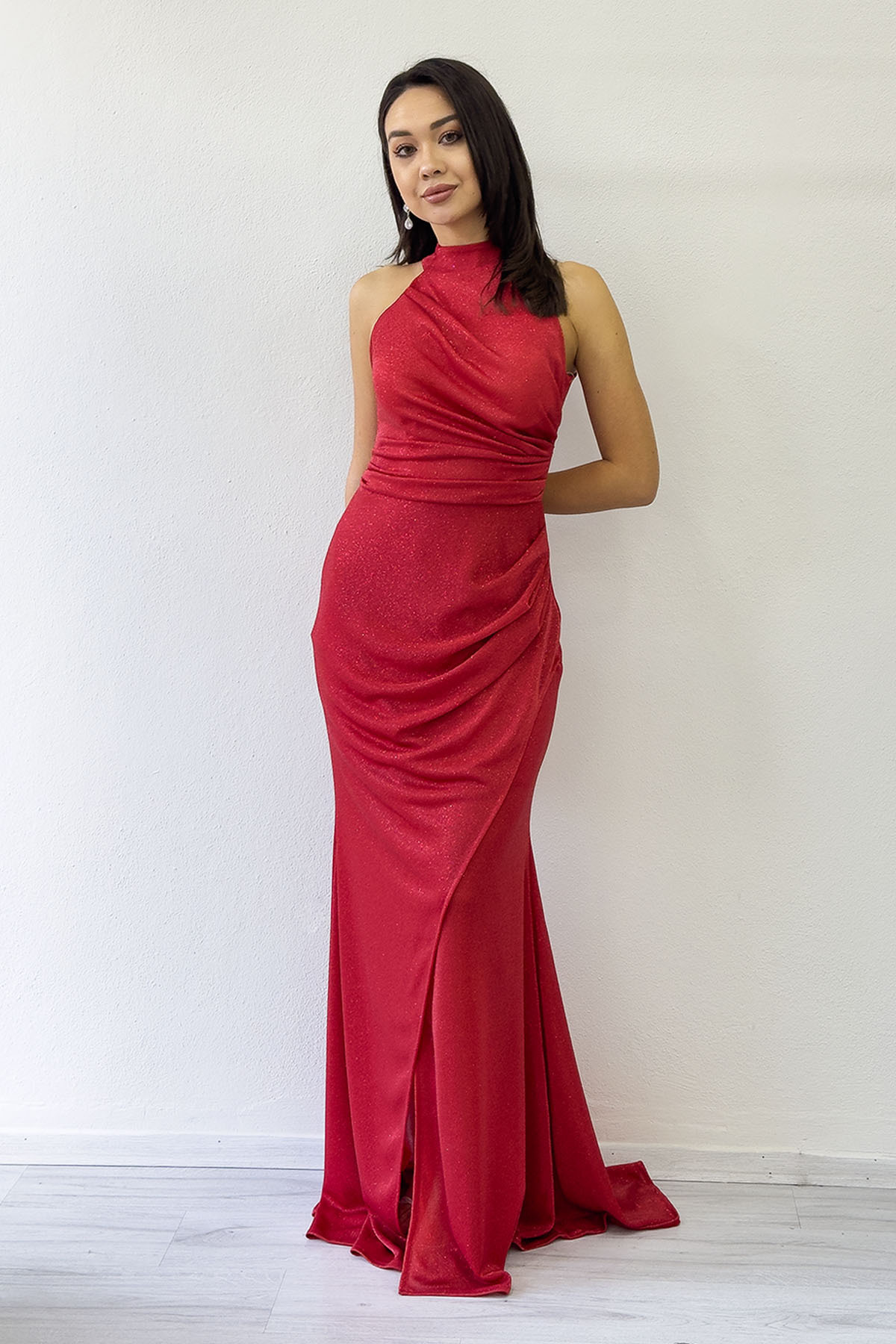 Kadın Halter Yaka Simli Drapeli Yırtmaçlı Abiye Elbise Bebe Mavi, Pudra, Siyah Kadın Halter Yaka Simli Drapeli Yırtmaçlı Abiye Elbise Bebe Mavi, Pudra, Siyah ZKS000339 XL