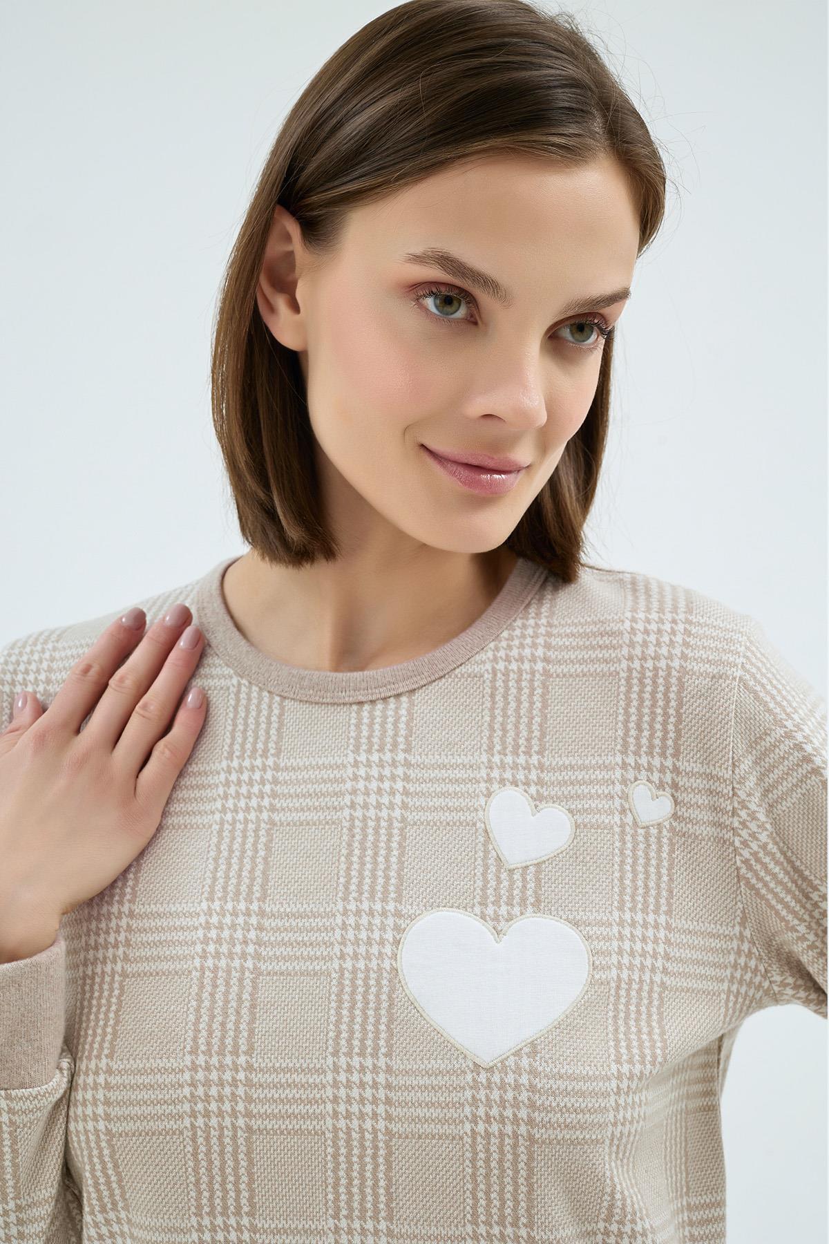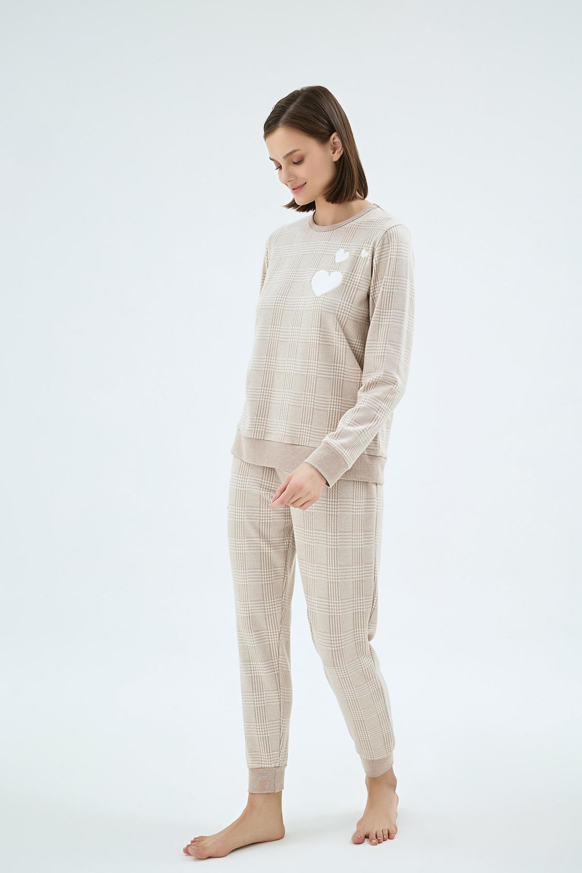 Kadın Uzun Kollu Kalp Desenli Ekose Jogger Paça Bej Pijama Takımı C3T2N071 Kadın Uzun Kollu Kalp Desenli Ekose Jogger Paça Bej Pijama Takımı C3T2N071 328618 XL