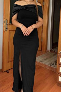 Esnek Parlak Saten Yaka Pile Fiyonk Detaylı Yırtmaçlı Abiye Elbise 583363 SİYAH Esnek Parlak Saten Yaka Pile Fiyonk Detaylı Yırtmaçlı Abiye Elbise 583363 SİYAH 583327 XL