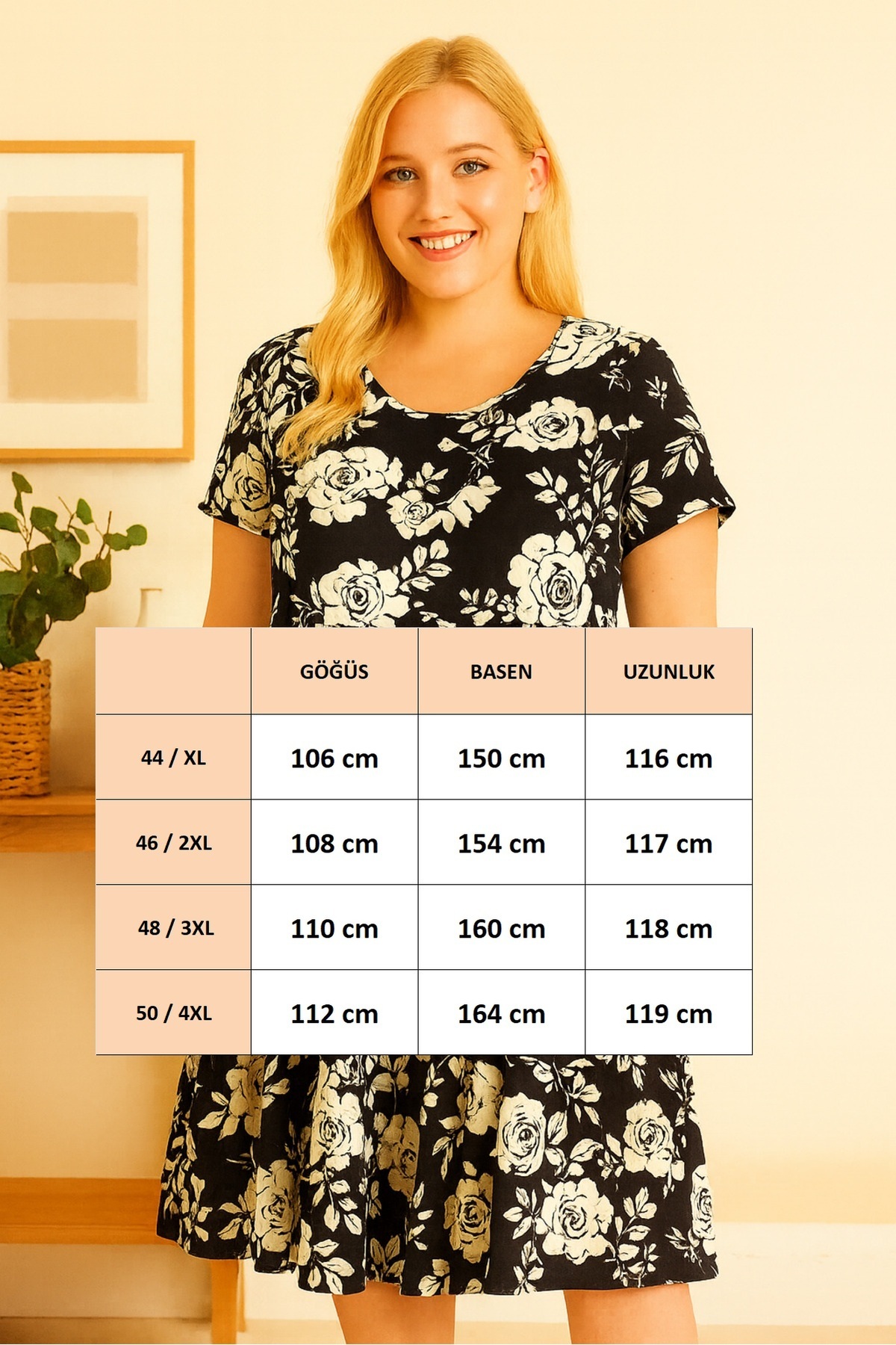 Kadın Büyük Beden Desenli Geniş Yaka Etek Volanlı Kısa Kol Midi Boy Dokuma Elbise Kadın Büyük Beden Desenli Geniş Yaka Etek Volanlı Kısa Kol Midi Boy Dokuma Elbise BT25YB116746 4XL