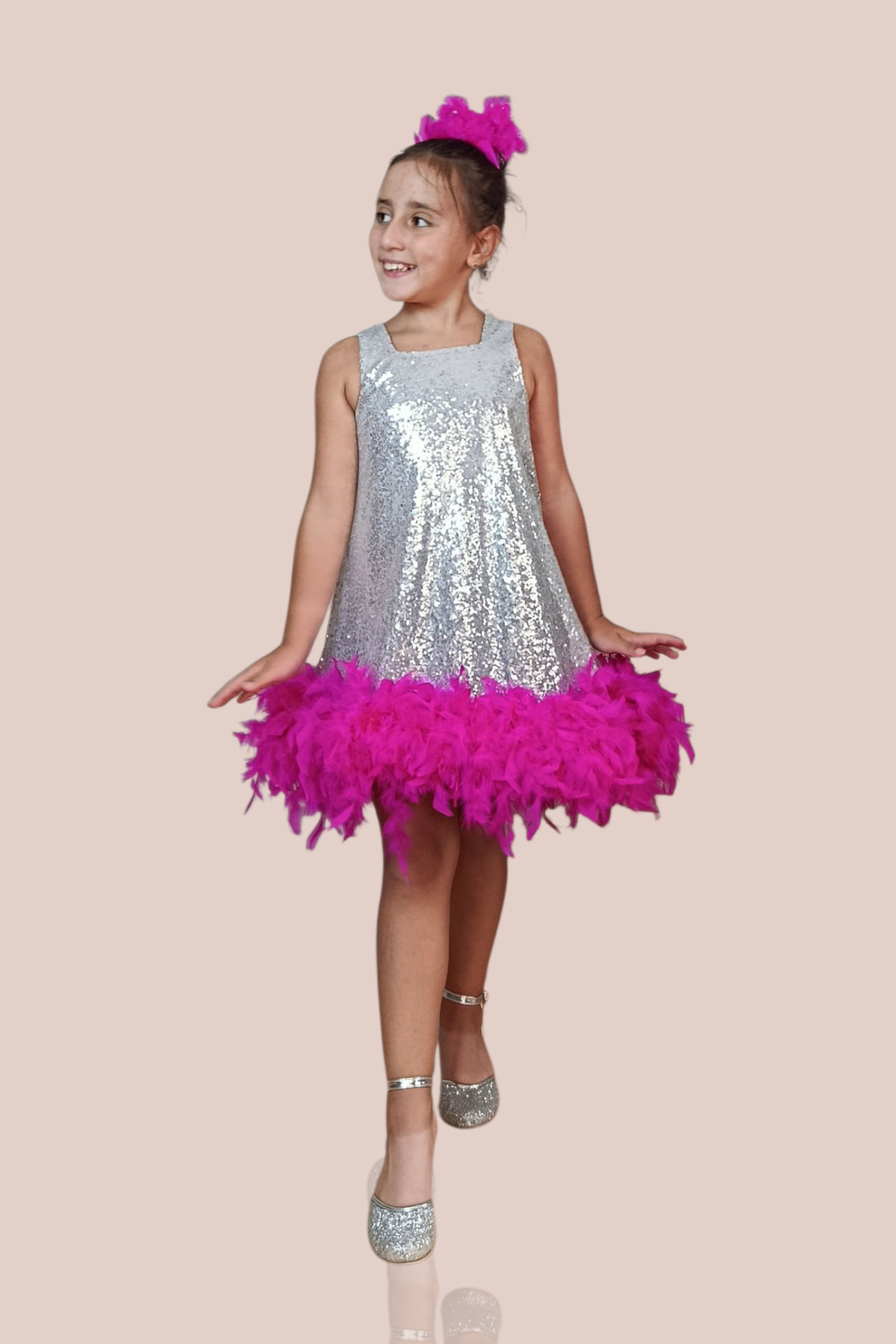 KIZ ÇOCUK GÜMÜŞ KARE YAKA ETEK UCU FUŞYA OTRİŞLİ PULLU ABİYE ELBİSE KIZ ÇOCUK GÜMÜŞ KARE YAKA ETEK UCU FUŞYA OTRİŞLİ PULLU ABİYE ELBİSE EB10032 11 Yaş