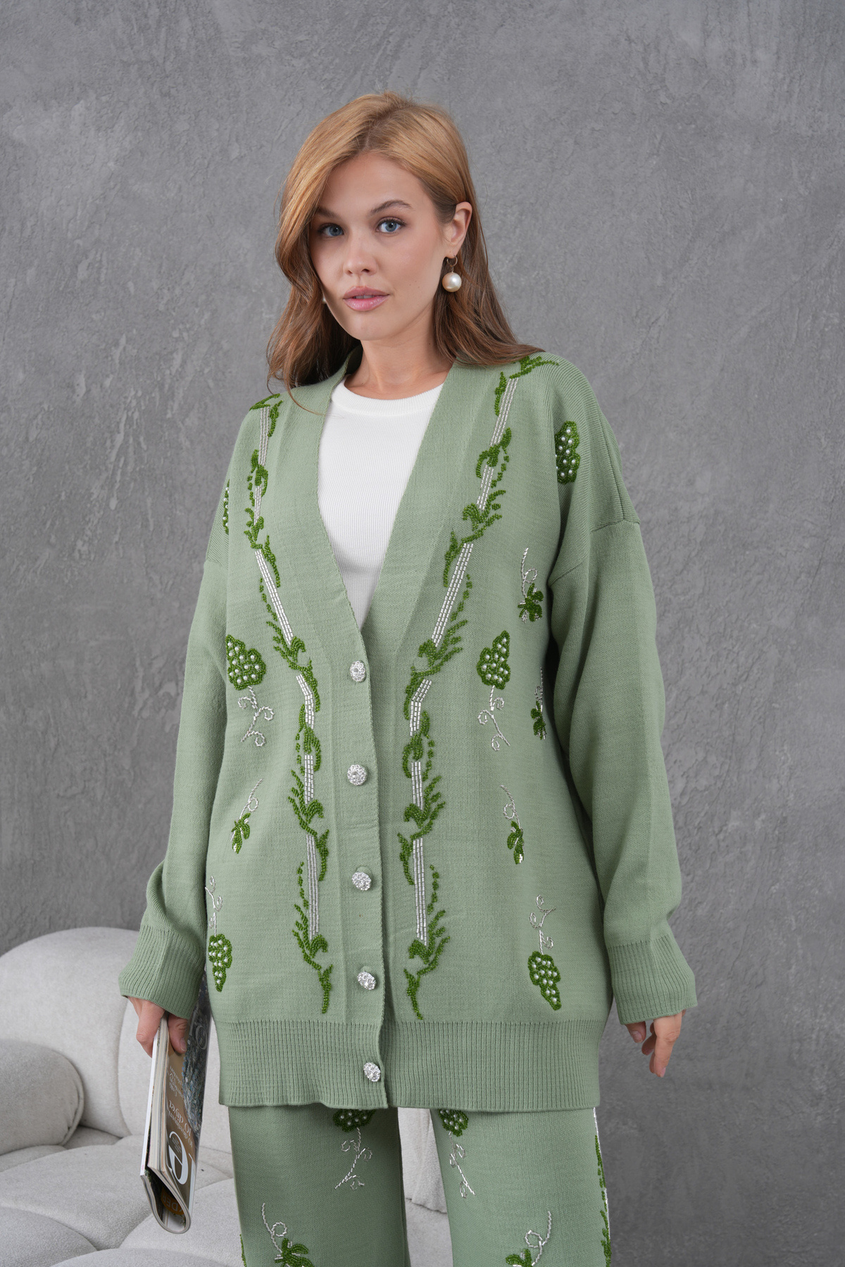 Kadın Boncuk İşlemeli Geniş Kalıp Triko Hırka Ve Pantolon Alt Üst Takım Kadın Boncuk İşlemeli Geniş Kalıp Triko Hırka Ve Pantolon Alt Üst Takım 504 Standart