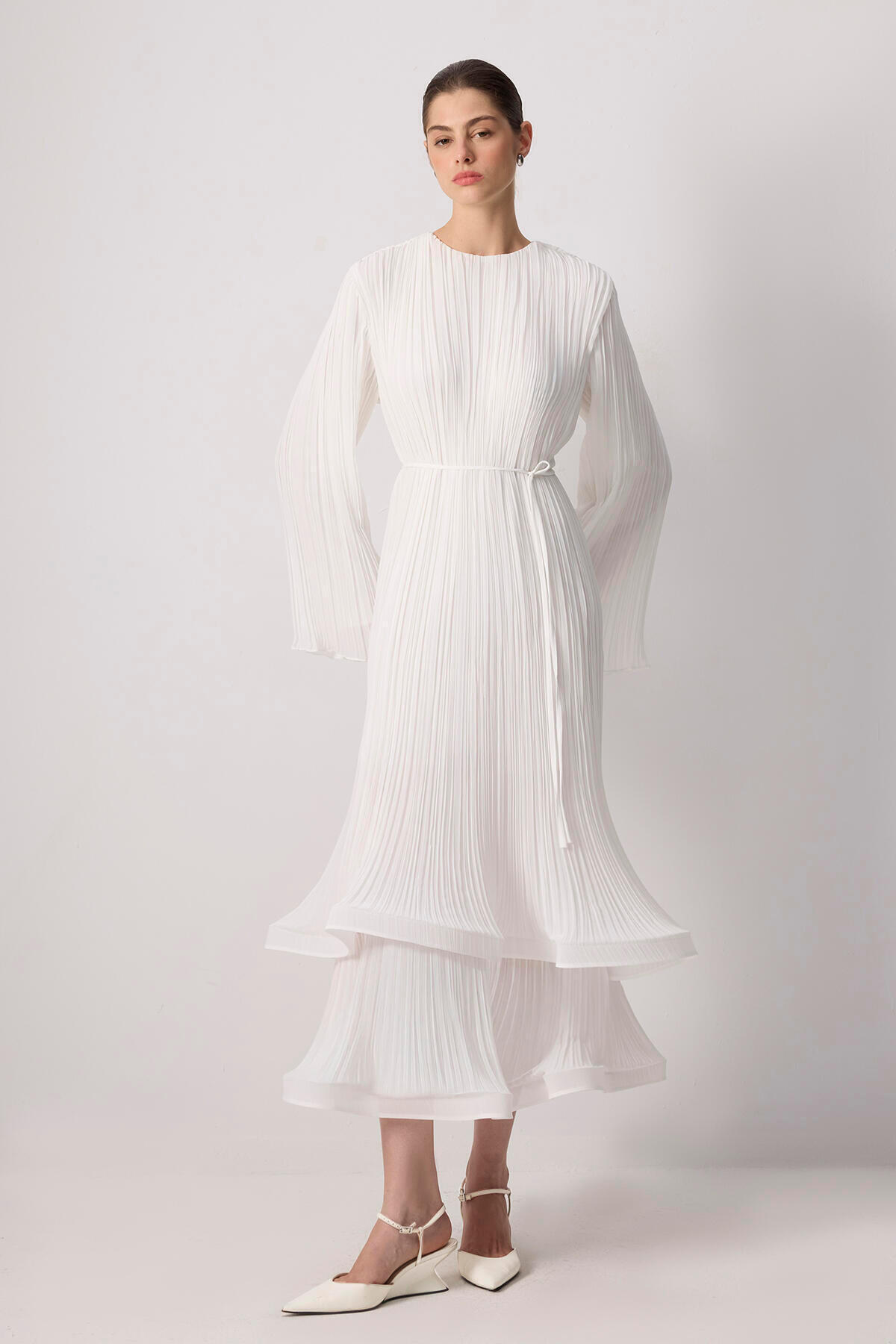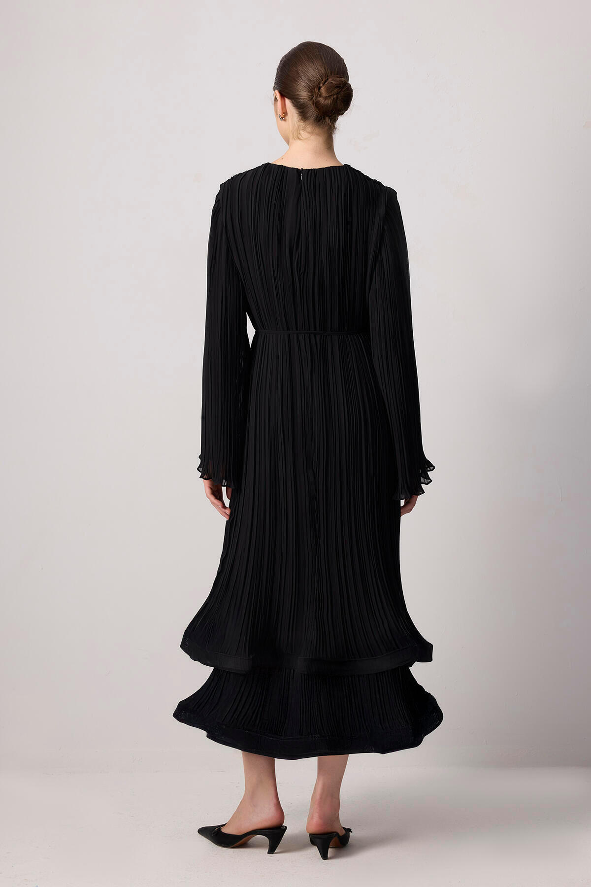 BİYE KEMERLİ PİLİSELİ ŞİFON ELBİSE BİYE KEMERLİ PİLİSELİ ŞİFON ELBİSE 25Y3CZM023 L