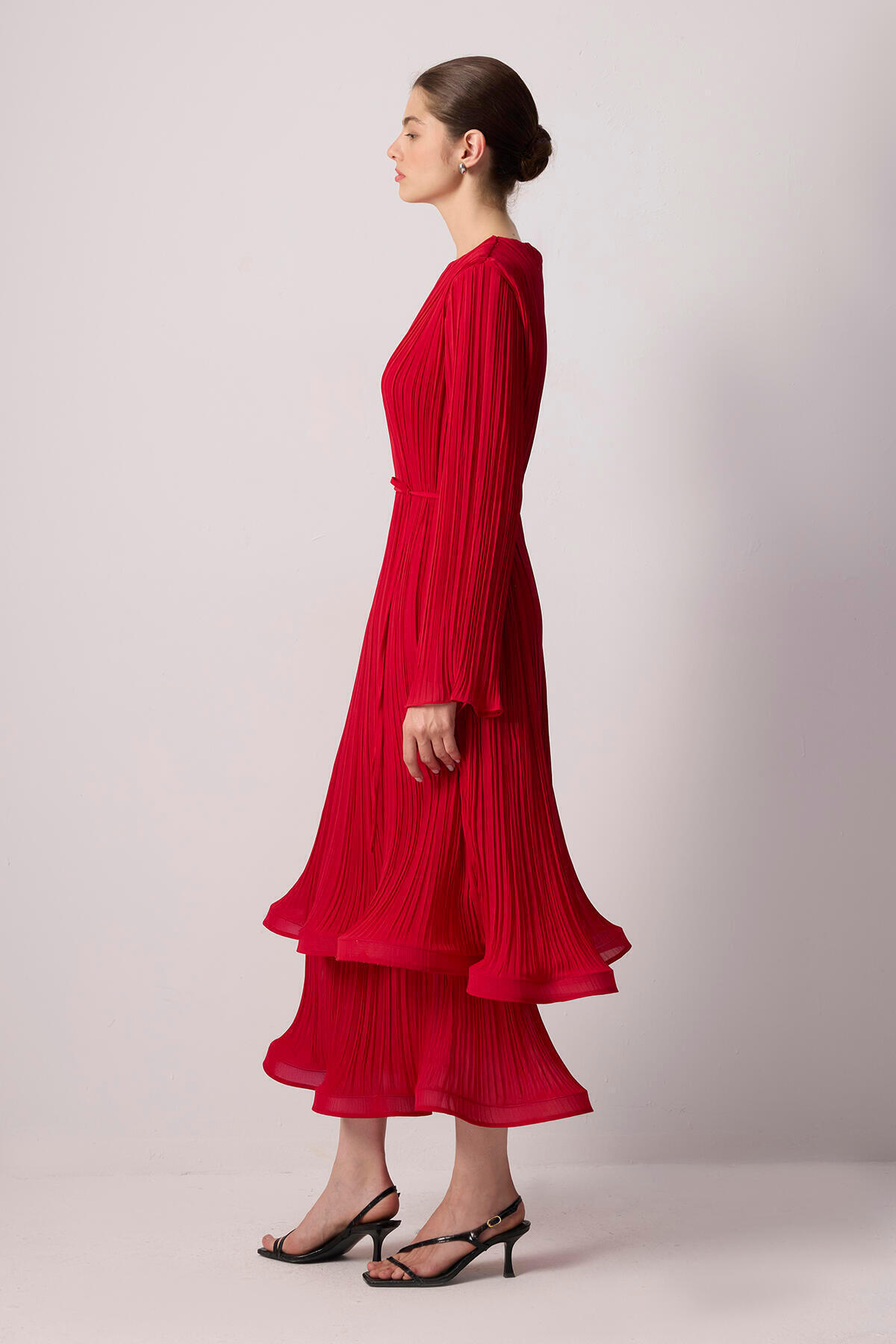 BİYE KEMERLİ PİLİSELİ ŞİFON ELBİSE BİYE KEMERLİ PİLİSELİ ŞİFON ELBİSE 25Y3CZM023 L