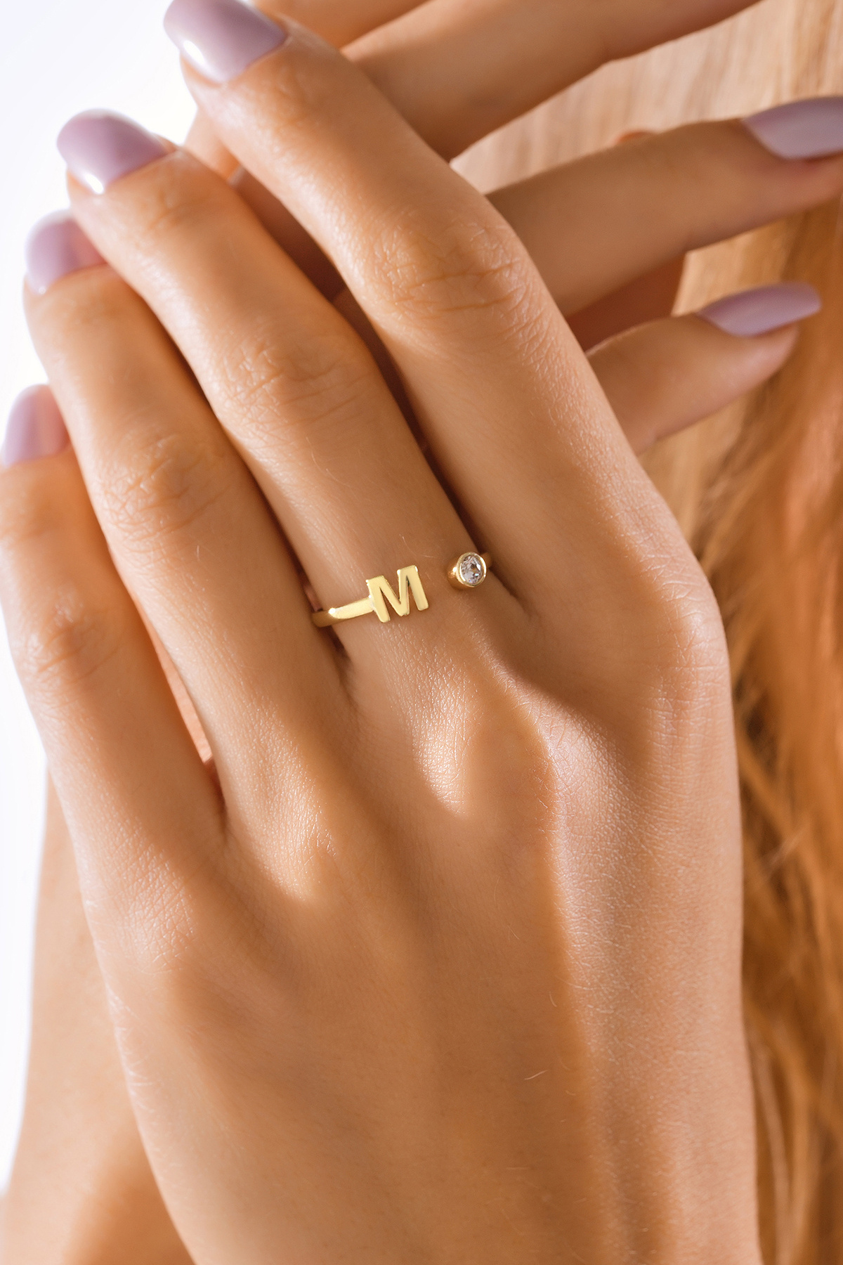 14 Ayar Altın Yüzük Baş Harfli Tek Taş Yüzük 14 Ayar Altın Yüzük Baş Harfli Tek Taş Yüzük VRYZK770024-MDL 23