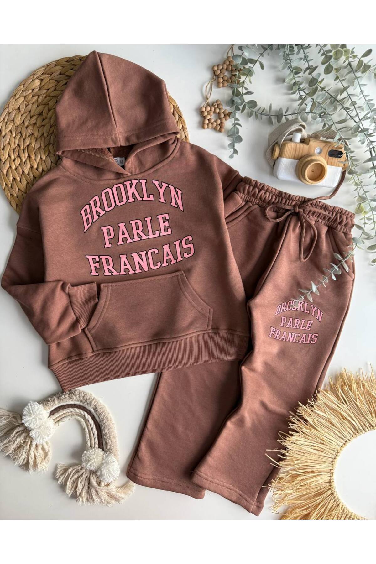 ız Çocuk Kapüşonlu Baskılı 3 İplik Kumaş Alt Üst Takım ız Çocuk Kapüşonlu Baskılı 3 İplik Kumaş Alt Üst Takım lalunacapskahve 9-10 Yaş