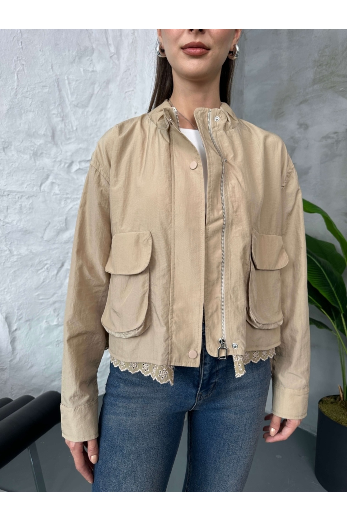 Bej Dantel Etek Uçlu Premium Ceket Bej Dantel Etek Uçlu Premium Ceket 52110001 L